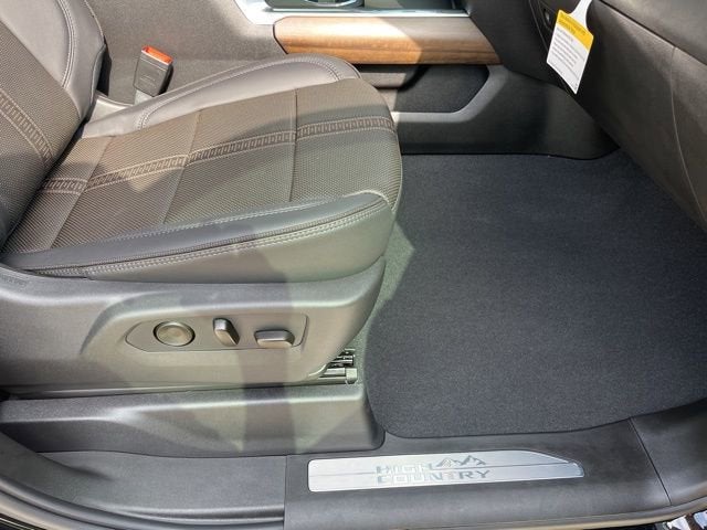 Gooseneck/5th Wheel Prep Package (Chevytec Spray-on Black Bedliner), High Country Premium Package (Power Sunroof), Preferred Equipment Group 3LZ (120-Volt Bed Mounted Power Outlet, 120-Volt Interior Power Outlet, 170 Amp Alternator, 6 Rectangular Chromed Tubular Assist Steps, Auto-Dimming Inside Rear-View Mirror, Bed View Camera with Two Trailer Camera Provisions, Bluetooth® For Phone, Chevrolet Connected Access Capable, Chrome Door Handles, Chrome Mirror Caps, Color-Keyed Carpeting Floor Covering, Compass Located in Instrument Cluster, Deep-Tinted Glass, Durabed Pickup Bed, Electric Rear-Window Defogger, Front Bucket Seats, Front Carpeted Floor Mats, Front Chrome Recovery Hooks, Front LED Fog Lamps, Front Rain-Sensing Wipers, Heated 2nd Row Outboard Seats, Heated Steering Wheel, Hitch Guidance with Hitch View, in-Vehicle Trailering App System, Keyless Open and Start, LED Cargo Area Lighting, Manual Tilt-Wheel/Telescoping Steering Column, OnStar Services Capable, Perforated Leather Seating Surfaces, Polished Exhaust Tip, Power Door Locks, Power Front Windows with Driver Express Up/Down, Power Front Windows with Passenger Express Up/Down, Power Rear Windows with Express Down, Power Sliding Rear Window with Defogger, Power Tailgate, Push Button Start, Rear Carpeted Floor Mats, Rear Cross Traffic Alert, Rear Wheelhouse Liners, Remote Vehicle Starter System, SiriusXM with 360L Trial Subscription, Standard Tailgate, Steering Wheel Audio Controls, Trailer Camera Provisions, Trailer Side Blind Zone Alert, Ultrasonic Front and Rear Park Assist, Unauthorized Entry Theft-Deterrent System, Universal Home Remote, Wi-Fi Hotspot Capable, Wireless Charging, and Wrapped Steering Wheel), Suspension Package, Technology Package (Auto-Dimming Inside Rearview Mirror with Camera and Multicolor 15 Diagonal Head-Up Display), Up-Level Rear Seat with Storage Package, 10-Speed Automatic, 4WD, Black Leather, 10-Way Power Driver Seat Adjuster with Lumbar, 10-Way Power Passenger Seat Adjuster with Lumbar, 220 Amp Alternator, 4-Wheel Disc Brakes, 7 Speakers, ABS brakes, Air Conditioning, All-Weather Floor Liners, Alloy wheels, AM/FM radio: SiriusXM with 360L, Apple CarPlay/Android Auto, Auto High-beam Headlights, Auto-dimming door mirrors, Auto-dimming Rear-View mirror, Automatic temperature control, Bodyside moldings, Bose Premium 7-Speaker Sound System, Brake assist, Bumpers: body-color, Compass, Delay-off headlights, Driver door bin, Driver Memory, Driver vanity mirror, Dual front impact airbags, Dual front side impact airbags, Electronic Stability Control, Emergency communication system, Engine Block Heater, Exhaust Brake, Floor-Mounted Center Console, Front anti-roll bar, Front Black Bowtie Emblem, Front Center Armrest, Front dual zone A/C, Front fog lights, Front reading lights, Front wheel independent suspension, Fully automatic headlights, Garage door transmitter, Genuine wood console insert, Genuine wood dashboard insert, Genuine wood door panel insert, Heated door mirrors, Heated Driver and Front Outboard Passenger Seats, Heated front seats, Heated rear seats, Heated steering wheel, Heavy-Duty 80 Amp-Hour Battery, Illuminated entry, Low tire pressure warning, Memory seat, Occupant sensing airbag, Outside temperature display, Overhead airbag, Overhead console, Panic alarm, Passenger door bin, Passenger vanity mirror, Power door mirrors, Power driver seat, Power passenger seat, Power steering, Power windows, Premium audio system: Chevrolet Infotainment 3 Premium, Radio: Chevrolet Infotainment 3 Premium System, Rain sensing wipers, Rear reading lights, Rear seat center armrest, Rear step bumper, Rear window defroster, Remote keyless entry, Security system, Speed control, Speed-sensing steering, Split folding rear seat, Steering wheel mounted Price includes: $10