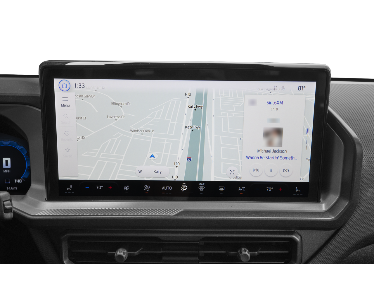 Ford Connectivity Package (1-Year Included), Internet access capable: 5G Modem - Ford Connectivity Package, 4-Wheel Disc Brakes, 6 Speakers, ABS brakes, Air Conditioning, Alloy wheels, AM/FM radio: SiriusXM with 360L, AM/FM Stereo, Apple CarPlay/Android Auto, Auto High-beam Headlights, Auto-dimming Rear-View mirror, Automatic temperature control, Brake assist, Compass, Delay-off headlights, Driver door bin, Driver vanity mirror, Dual front impact airbags, Dual front side impact airbags, Electronic Stability Control, Emergency communication system: SYNC 4 911 Assist, Exterior Parking Camera Rear, Four wheel independent suspension, Front anti-roll bar, Front Bucket Seats, Front Center Armrest, Front Driver/Passenger Seat Back Map Pockets, Front dual zone A/C, Front fog lights, Front reading lights, Fully automatic headlights, Heated door mirrors, Heated front seats, Heated steering wheel, Illuminated entry, Knee airbag, Low tire pressure warning, Memory seat, Occupant sensing airbag, Outside temperature display, Overhead airbag, Overhead console, Panic alarm, Passenger door bin, Passenger vanity mirror, Power door mirrors, Power driver seat, Power passenger seat, Power steering, Power windows, Radio data system, Rear anti-roll bar, Rear Parking Sensors, Rear reading lights, Rear seat center armrest, Rear window defroster, Rear window wiper, Remote keyless entry, Security system, SiriusXM with 360L, Speed control, Speed-sensing steering, Speed-Sensitive Wipers, Split folding rear seat, Steering wheel mounted audio controls, SYNC 4 with Enhanced Voice Recognition, Tachometer, Telescoping steering wheel, Tilt steering wheel, Traction control, Trip computer, Variably intermittent wipers, and Wheels: 18 Ebony Black. 25/30 City/Highway MPG