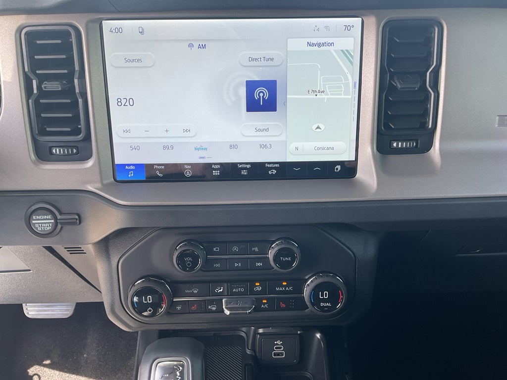 The vehicle has auto-adjust speed for safe following. Apple CarPlay: Seamless smartphone integration for this 2026 Ford Bronco - stay connected and entertained on the go! The vehicle comes equipped with Android Auto for seamless smartphone integration on the road. The leather seats in this Ford Bronco are a must for buyers looking for comfort, durability, and style. This 1/2 ton suv is pure luxury with a heated steering wheel. The rear parking assist technology on the Ford Bronco will put you at ease when reversing. The system alerts you as you get closer to an obstruction. Bluetooth® technology is built into this vehicle, keeping your hands on the steering wheel and your focus on the road. You'll never again be lost in a crowded city or a country region with the navigation system on this unit. Start this 2026 Ford Bronco from inside with remote start. See what's behind you with the back up camera on this Ford Bronco.