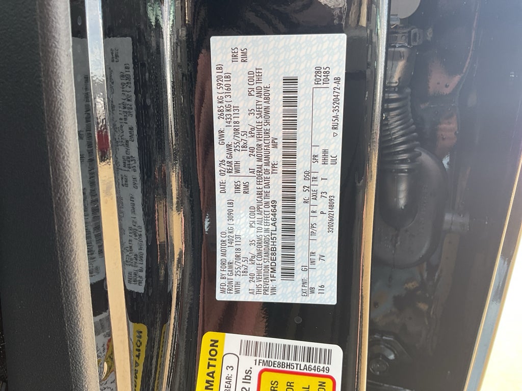 Equipment Group 314A Lux Package: 18" Bright Machined Aluminum Wheels; 3.73 Axle Ratio; 2.3L EcoBoost I-4 Engine; Evasive Steering Assist; 5. 920 lbs GVWR; Adaptive Cruise Control; Information on Demand Panel; B&O Sound System by Bang and Olufsen; Front Parking Sensors; 10-Speed Automatic Transmission; 360-Degree Camera; P255/70R18 A/T Tires; Heated Leather-Trimmed/vinyl Bucket Seats; Sideview Mirrors. Shadow Black-Painted Hard Top. Hard Top Sound Deadening Headliner. **Equipment listed is based on original vehicle build and subject to change. Please confirm the accuracy of the included equipment by calling the dealer prior to purchase.**
