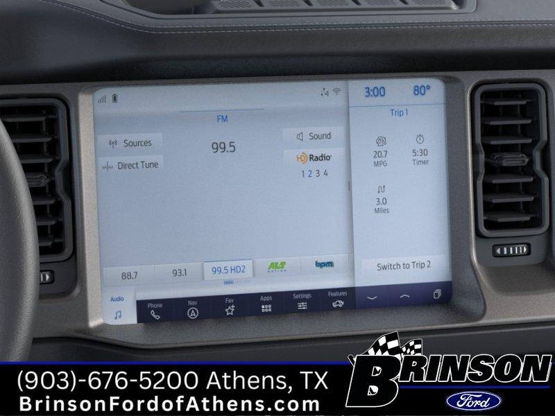 2026 Ford Bronco Outer Banks 4WD - located in Athens, TX - blends iconic rugged styling with modern comfort and technology for drivers who demand capability and refinement. Powered by a responsive 2.3L 4-cylinder gasoline engine and a sophisticated 4WD system, this Ford Bronco delivers confident on-road manners and impressive off-road composure, whether navigating East Texas backroads or cruising city streets. The Outer Banks trim elevates everyday driving with a premium interior, intuitive tech, and thoughtful convenience features. Stay connected with Android Auto and Hands-Free Bluetooth® for seamless smartphone integration and safe calling. Plan routes and explore new destinations using factory Navigation, while the Back-Up Camera assists with precise parking and maneuvering. Remote Start adds comfort on hot or cool days, letting you condition the cabin before you step inside. Exterior cues like signature Ford Bronco styling, durable wheels, and purposeful ground clearance highlight this model's adventure-ready capability. Inside, comfortable seating and quality materials make long drives more enjoyable for driver and passengers alike. Safety-focused features and a capable drivetrain make the 2026 Ford Bronco Outer Banks a smart choice for families, weekend explorers, and daily commuters seeking versatility. This Athens, TX-located Ford Bronco is ready for test drives and inspection. Contact the showroom to schedule a visit and experience the confident performance and connected features of the 2026 Ford Bronco Outer Banks in person.