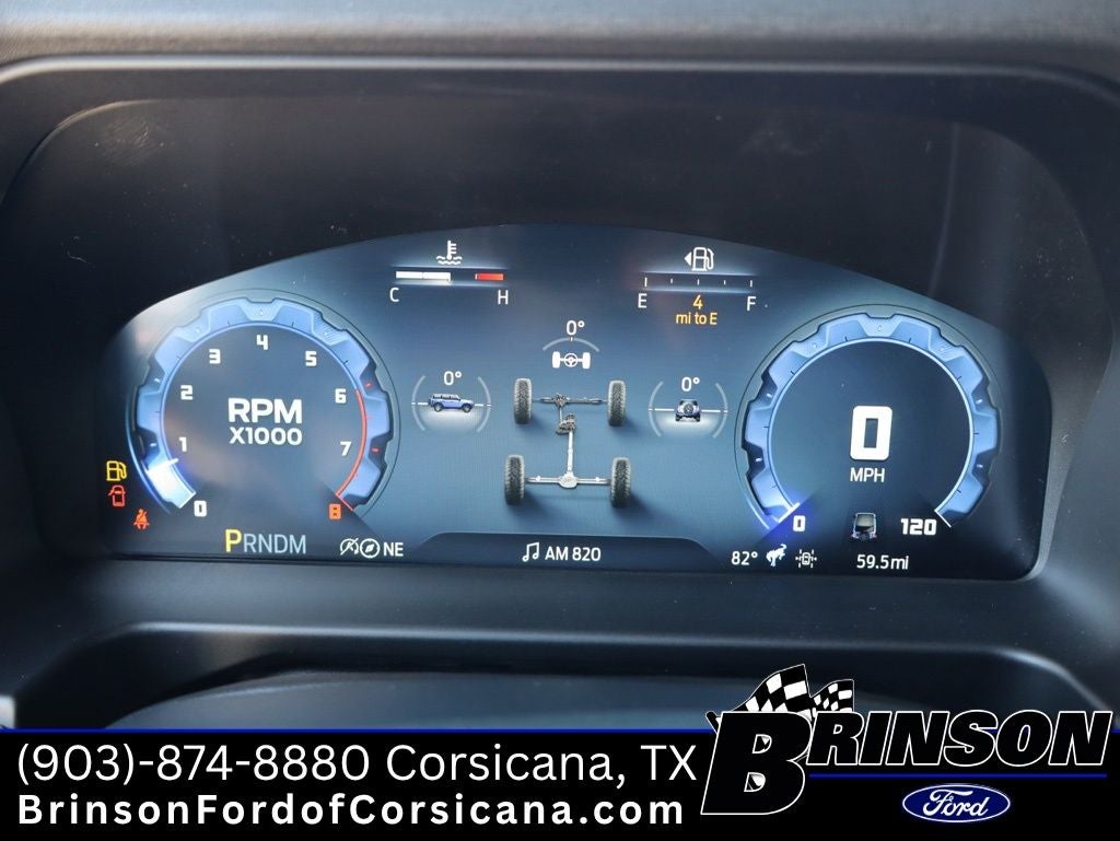Ford Connectivity Package (1-Year Included), 18 Bright Machined Aluminum Wheels, 3.73 Axle Ratio, 4-Wheel Disc Brakes, 7 Speakers, ABS brakes, Air Conditioning, Alloy wheels, AM/FM radio: SiriusXM with 360L, AM/FM Stereo, Auto High-beam Headlights, Auto-dimming Rear-View mirror, Automatic temperature control, Brake assist, Compass, Connected Navigation, Delay-off headlights, Driver door bin, Driver vanity mirror, Dual front impact airbags, Dual front side impact airbags, Electronic Stability Control, Emergency communication system: 911 Assist, Exterior Parking Camera Rear, Front anti-roll bar, Front Bucket Seats, Front Center Armrest, Front dual zone A/C, Front fog lights, Front reading lights, Front wheel independent suspension, Fully automatic headlights, Heated door mirrors, Heated front seats, Heated Leather-Trimmed/Vinyl Bucket Seats, Heated steering wheel, Illuminated entry, Integrated roll-over protection, Leather Shift Knob, Low tire pressure warning, Navigation system: Connected Navigation, Occupant sensing airbag, Outside temperature display, Overhead airbag, Overhead console, Panic alarm, Passenger door bin, Passenger vanity mirror, Power door mirrors, Power driver seat, Power passenger seat, Power steering, Power windows, Radio data system, Rear seat center armrest, Remote keyless entry, Security system, SiriusXM with 360L, Speed control, Split folding rear seat, Steering wheel mounted audio controls, SYNC 4, Tachometer, Telescoping steering wheel, Tilt steering wheel, Traction control, Trip computer, Variably intermittent wipers, and Voltmeter.