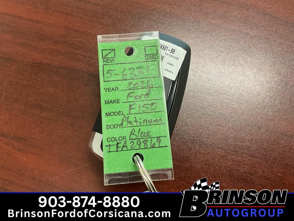 2026 Ford F-150 Platinum 4WD - located in Corsicana, TX - blends luxury appointments with rugged capability. Powered by a responsive 3.5L V6 gasoline engine and advanced four-wheel drive, this Platinum trim elevates every drive with refined materials, distinctive exterior styling, and thoughtful technology. The cabin welcomes you with premium seating, precision finishes, and intuitive controls designed for comfort on long hauls or daily commutes. Standard and available driver-assist features enhance confidence behind the wheel: Adaptive Cruise Control maintains a safe following distance, Cross-Traffic Alert warns of approaching vehicles while reversing, and a Back-Up Camera provides clear rear visibility for parking and maneuvering. Seamless connectivity comes courtesy of Hands-Free Bluetooth® for phone calls and media streaming, while Remote Start lets you prepare the cabin from a distance. Exterior accents, sleek lighting, and signature Platinum details make a striking presence on Corsicana streets and beyond. The truck's bed and towing provisions are engineered for real-world utility, supporting recreational gear, work tools, and weekend projects with ease. Whether navigating city roads or exploring off-pavement routes, this 2026 Ford F-150 Platinum pairs refined comfort with the capability expected of an Ford F-150. Experience this exceptional example in Corsicana, TX - schedule a test drive to feel the difference firsthand.