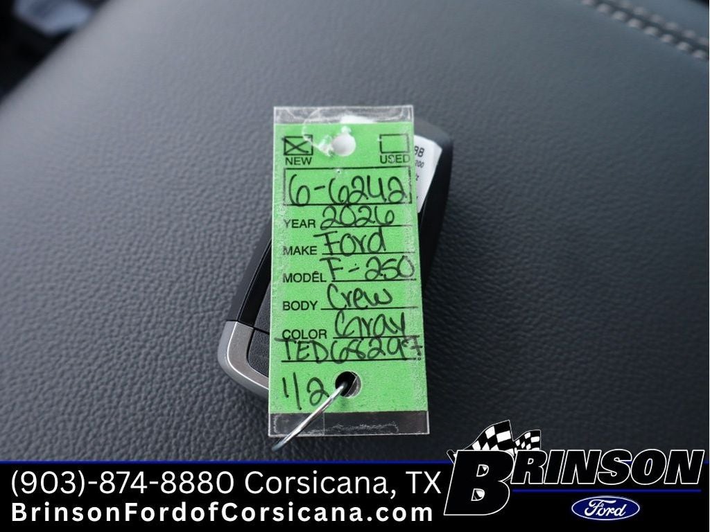 Command the road in this 2026 Ford F-250 Super Duty LARIAT 4WD with the rugged, torquey V8 6.7L diesel engine—perfect for heavy towing, serious hauling, and confident off-road adventures. Located in Corsicana, TX, this LARIAT blends premium comfort with work-ready capability at the best price you'll find in the area. Step inside to experience refined leather seats and a heated steering wheel that keep every drive comfortable, whether you're headed to a job site or a weekend getaway. Remote start gets the cabin ready before you step in, while hands-free Bluetooth® keeps calls and media connected safely on the move. The factory Off-Road Package elevates capability with upgraded suspension, skid protection, and performance features designed to tackle rough trails and uneven terrain. Under the hood, the 6.7L turbo diesel V8 delivers incredible torque and durability for demanding towing and payload needs, paired with advanced 4WD systems to maintain traction in challenging conditions. The LARIAT trim offers a premium suite of tech and convenience amenities, wrapped in a bold, commanding exterior that reflects both strength and style. If you want a heavy-duty truck that balances luxury, capability, and value, this 2026 Ford F-250 Super Duty LARIAT 4WD diesel in Corsicana, TX, is the smart choice. Contact us today to lock in the best price and arrange a test drive.