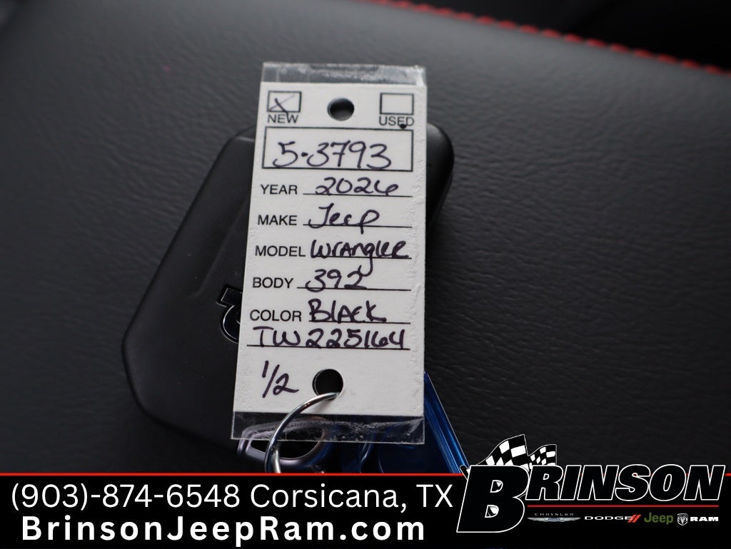 Recent Arrival! $3,748 off MSRP! black clearcoat 2026 Jeep Wrangler 4D Sport Utility 4WD 8-Speed Automatic SRT HEMI 6.4L V8 MDS Quick Order Package 27X Moab (E-Locker Front Axle, Freedom Panel Storage Bag, Front Disconnecting Stabilizer Bar, Nappa Leather Seats, Rear Window Defroster, and Rear Window Wiper/Washer), 12.3 Touchscreen Display, 35 Tire Rubicon 392 Suspension, 4-Wheel Disc Brakes, 4.56 Rear Axle Ratio, 4G LTE Wi-Fi Hot Spot, 9 Speakers, ABS brakes, Air Conditioning, Alloy wheels, AM/FM radio: SiriusXM with 360L, Apple CarPlay, Apple CarPlay/Android Auto, Auto-dimming Rear-View mirror, Automatic temperature control, Aux Battery, Auxiliary Switches, Brake assist, Class II Receiver Hitch, Compass, Connectivity - US/Canada, Delay-off headlights, Driver door bin, Driver vanity mirror, Dual front impact airbags, Dual front side impact airbags, Electronic Stability Control, Emergency communication system: Jeep Connect, For More Info, Call 800-643-2112, Front anti-roll bar, Front Bucket Seats, Front Center Armrest w/Storage, Front dual zone A/C, Front fog lights, Front License Plate Bracket, Front reading lights, Fully automatic headlights, Garage door transmitter, Glass rear window, Google Android Auto, Heated door mirrors, Heated front seats, Heated steering wheel, Illuminated entry, Integrated Center Stack Radio, Integrated roll-over protection, Leather Shift Knob, Leather steering wheel, Low tire pressure warning, MOPAR All-Weather Floor Mats, Navigation System, Non-Lock Fuel Cap w/o Discriminator, Occupant sensing airbag, Outside temperature display, Overhead airbag, Panic alarm, ParkView Rear Back-Up Camera, Passenger door bin, Passenger vanity mirror, Power door mirrors, Power driver seat, Power passenger seat, Power steering, Power Top Quarter Window Storage Bag, Power windows, Radio data system, Radio: Uconnect 5 Nav w/12.3 Display, Rear anti-roll bar, Rear reading lights, Rear seat center armrest, Rear window defroster, Rear window wiper, Remote keyless entry, Removable Rear Quarter Windows, Security system, SiriusXM Radio Service, SiriusXM w/360L, Sky One-Touch Power Top, Speed control, Split folding rear seat, Sport steering wheel, Steering wheel mounted audio controls, Stop-Start Dual Battery System, Tachometer, Telescoping steering wheel, Tilt steering wheel, Traction control, Trip computer, Variably intermittent wipers, Voltmeter, Warn Winch, and Wheels: 17 x 8 Machined w/Black Pockets.