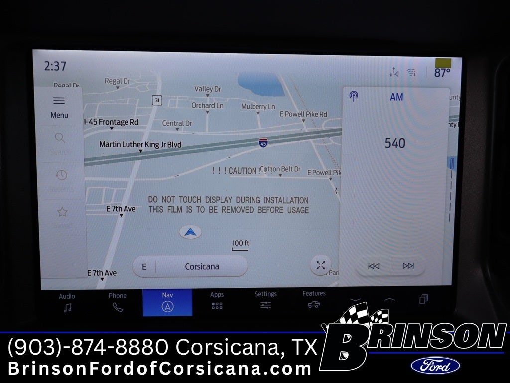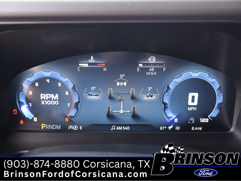 4-Wheel Disc Brakes, 4.46 Axle Ratio, 7 Speakers, ABS brakes, Air Conditioning, Alloy wheels, AM/FM radio: SiriusXM with 360L, AM/FM Stereo, Auto High-beam Headlights, Brake assist, Cloth Bucket Seats, Compass, Delay-off headlights, Driver door bin, Driver vanity mirror, Dual front impact airbags, Dual front side impact airbags, Electronic Stability Control, Emergency communication system: 911 Assist, Exterior Parking Camera Rear, Front anti-roll bar, Front Bucket Seats, Front Center Armrest, Front reading lights, Front wheel independent suspension, Fully automatic headlights, Heated door mirrors, Illuminated entry, Integrated roll-over protection, Leather Shift Knob, Low tire pressure warning, Occupant sensing airbag, Outside temperature display, Overhead airbag, Overhead console, Panic alarm, Passenger door bin, Passenger vanity mirror, Power door mirrors, Power steering, Power windows, Radio data system, Remote keyless entry, Security system, SiriusXM w/360L, Speed control, Split folding rear seat, Steering wheel mounted audio controls, SYNC 4, Tachometer, Telescoping steering wheel, Tilt steering wheel, Traction control, Trip computer, Variably intermittent wipers, and Wheels: 17 Carbonized Gray-Painted Aluminum.