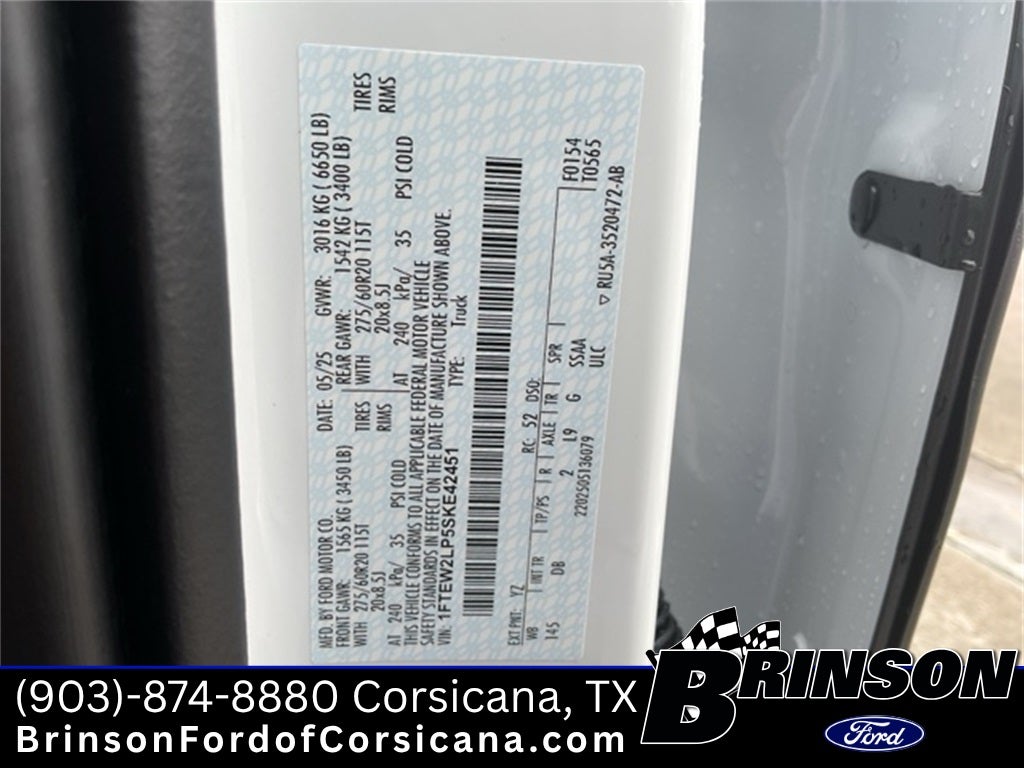 Equipment Group 200A Mid (LED Fog Lamps w/LED Cornering Lamp and Wheels: 20 Dark Gray w/Machined Aluminum), GVWR: 6,650 lbs Payload Package, 4WD, 3.55 Axle Ratio, 4-Wheel Disc Brakes, 6 Speakers, ABS brakes, Air Conditioning, Alloy wheels, AM/FM radio: SiriusXM with 360L, Auto High-beam Headlights, Brake assist, Bumpers: body-color, Compass, Delay-off headlights, Driver door bin, Dual front impact airbags, Dual front side impact airbags, Electronic Stability Control, Emergency communication system: SYNC 4 911 Assist, Front anti-roll bar, Front Bucket Seats, Front Center Armrest, Front reading lights, Front wheel independent suspension, Fully automatic headlights, Heated door mirrors, Illuminated entry, Low tire pressure warning, Occupant sensing airbag, Outside temperature display, Overhead airbag, Overhead console, Panic alarm, Passenger door bin, Passenger vanity mirror, Power door mirrors, Power steering, Power windows, Radio data system, Radio: AM/FM Stereo w/SiriusXM 360L, Rear Parking Sensors, Rear step bumper, Rear window defroster, Remote keyless entry, Security system, Speed control, Split folding rear seat, Steering wheel mounted audio controls, SYNC 4 w/Enhanced Voice Recognition, Tachometer, Telescoping steering wheel, Tilt steering wheel, Traction control, Trip computer, Variably intermittent wipers, Voltmeter, and Wheels: 18 Gloss Black.