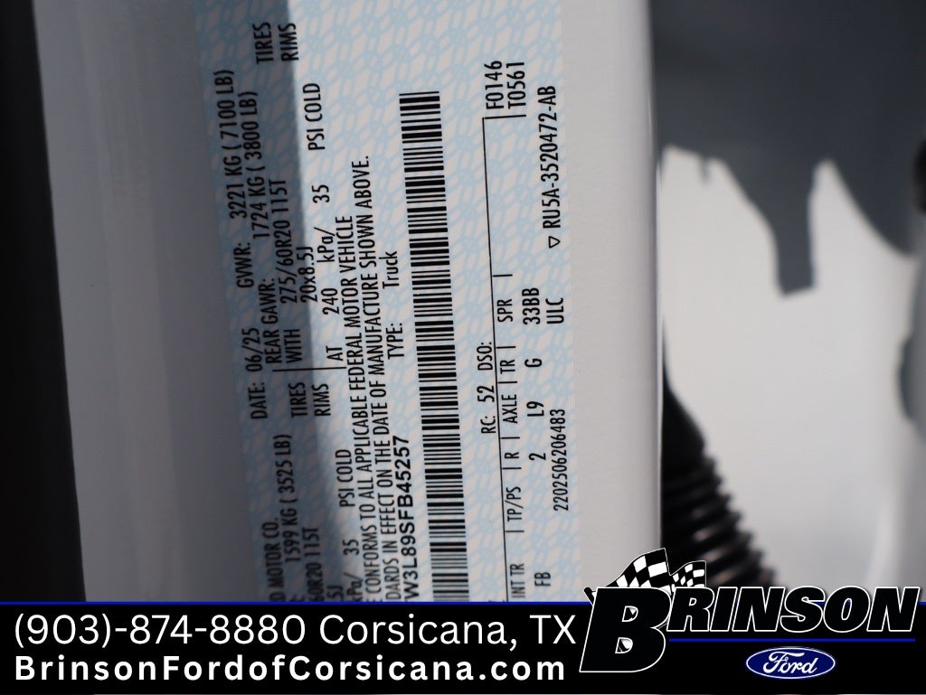 Oxford White 2025 Ford F-150 XLT 3.5L V6 EcoBoost 4WD 4D SuperCrew 10-Speed Automatic 4WD, 360 Degree Camera, 400W Cab & Bed Outlets, 4x4 FX4 Off-Road Bodyside Decal, 6 Angular Bright Anodized Step Bar, 6 Black Running Boards, Adaptive Cruise Control w/Stop & Go, Auto-Dimming Rear-View Mirror, Black Exterior Badging, Black Grille, Black Painted Grille w/Chrome Center Bar, Body-Color Front & Rear Bumpers, Chrome Door & Tailgate Handles, Chrome Single-Tip Exhaust, Cloth 40/Console/40 Front Seats, Connected Navigation, Dark Interior Appliques, Driver State Detection, Dual Exhaust w/Black Tips, Dual-Zone Electronic Automatic Temperature Control, Equipment Group 302A Mid, Evasive Steering Assist, Floor Shifter, Ford Co-Pilot360 Assist 2.0, Front Parking Sensors, FX4 Off-Road Package, Gray Box Side Decal, Heated Front Seats, Hill Descent Control, Intelligent Access w/Push Button Start, Monotube Rear Shocks, Off-Road Tuned Front Shock Absorbers, Power Glass Heated Sideview Mirrors, Power-Sliding Rear Window, Remote Start System w/Remote Tailgate Release, Rock Crawl Mode, Towing Technology, Tray Style Floor Liner w/o Carpet Mats, Wheels: 20 Gloss Black Painted Aluminum, Wrapped Steering Wheel, XLT Black Appearance Package Plus.
