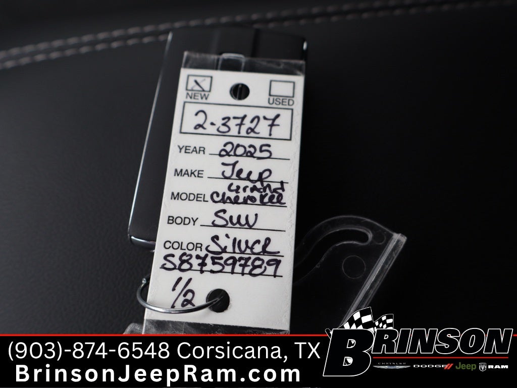 See Brinson Chrysler Dodge Jeep RAM for more details. Price includes:$2500 - 2025 National Retail Bonus Cash . Exp. 02/02/2026 $6,633 off MSRP! Priced below KBB Fair Purchase Price! Silver Zynith 2025 Jeep Grand Cherokee L 4D Sport Utility Altitude X RWD 8-Speed Automatic 3.6L V6 24V VVT Quick Order Package 23M Altitude X (115V Auxiliary Power Outlet, 3rd Row Charge-Only USB Ports, Altitude X, Black Headliner, Capri Leatherette/Suede Seats, Delete Laredo Badge, Gloss Black Exterior Accents, Heated Front Seats, Heated Steering Wheel, Power Liftgate, Power Sunroof, Rain Sensitive Windshield Wipers, Remote Start System, Selectable Tire Fill Alert, Wheels: 18 x 8.0 Fully Painted Aluminum 1, and Wireless Charging Pad), 3.45 Rear Axle Ratio, 3rd row seats: split-bench, 4-Wheel Disc Brakes, 6 Speakers, ABS brakes, Air Conditioning, Alloy wheels, AM/FM radio: SiriusXM, Anti-whiplash front head restraints, Automatic temperature control, Brake assist, Bumpers: body-color, Cloth Seats, Compass, Delay-off headlights, Driver door bin, Driver vanity mirror, Dual front impact airbags, Dual front side impact airbags, Electronic Stability Control, Emergency communication system, Four wheel independent suspension, Front anti-roll bar, Front Bucket Seats, Front Center Armrest w/Storage, Front dual zone A/C, Front License Plate Bracket, Front reading lights, Fully automatic headlights, Heated door mirrors, Illuminated entry, Knee airbag, Low tire pressure warning, Manual Fold Seatbacks, Model Year Tracking, Normal Duty Suspension, Occupant sensing airbag, Outside temperature display, Overhead airbag, Overhead console, Panic alarm, ParkView Rear Back-Up Camera, Passenger door bin, Passenger vanity mirror, Power door mirrors, Power driver seat, Power steering, Power windows, Radio data system, Radio: Uconnect 5 w/8.4 Display, Rear air conditioning, Rear anti-roll bar, Rear reading lights, Rear window defroster, Rear window wiper, Reclining 3rd row seat, Remote keyless entry, Security system, Speed control, Speed-Sensitive Wipers, Split folding rear seat, Spoiler, Steering wheel mounted audio controls, Tachometer, Telescoping steering wheel, Tilt steering wheel, Traction control, Trip computer, Variably intermittent wipers, Voltmeter, and Wheels: 18 x 8.0 Fully Painted Aluminum.