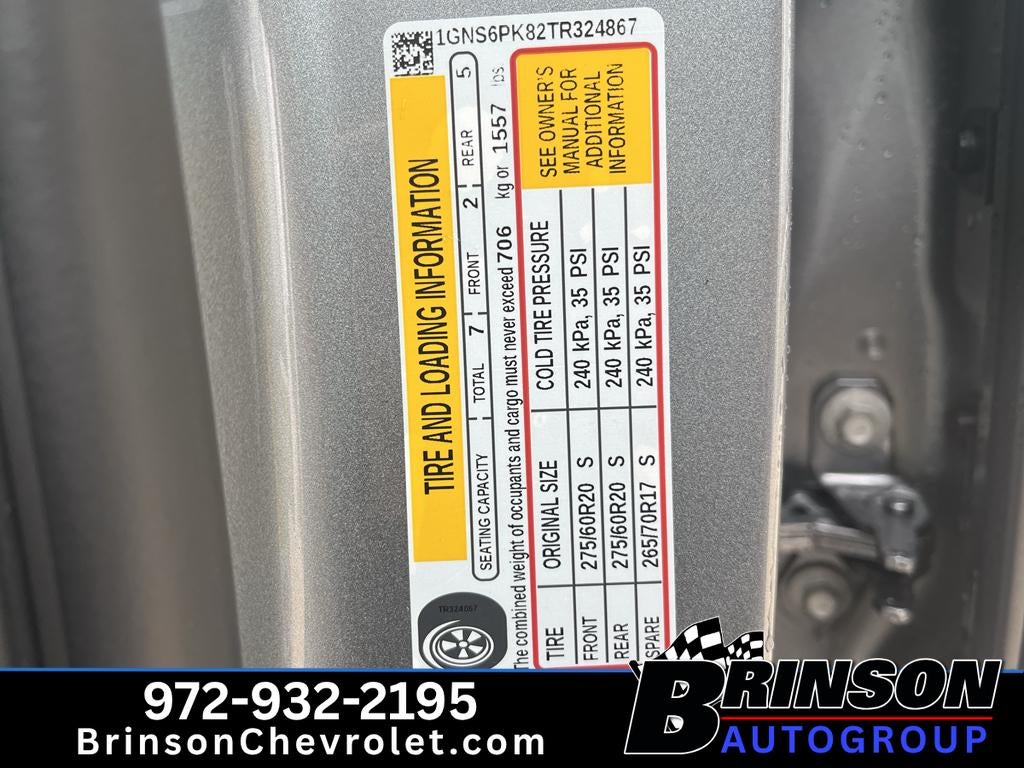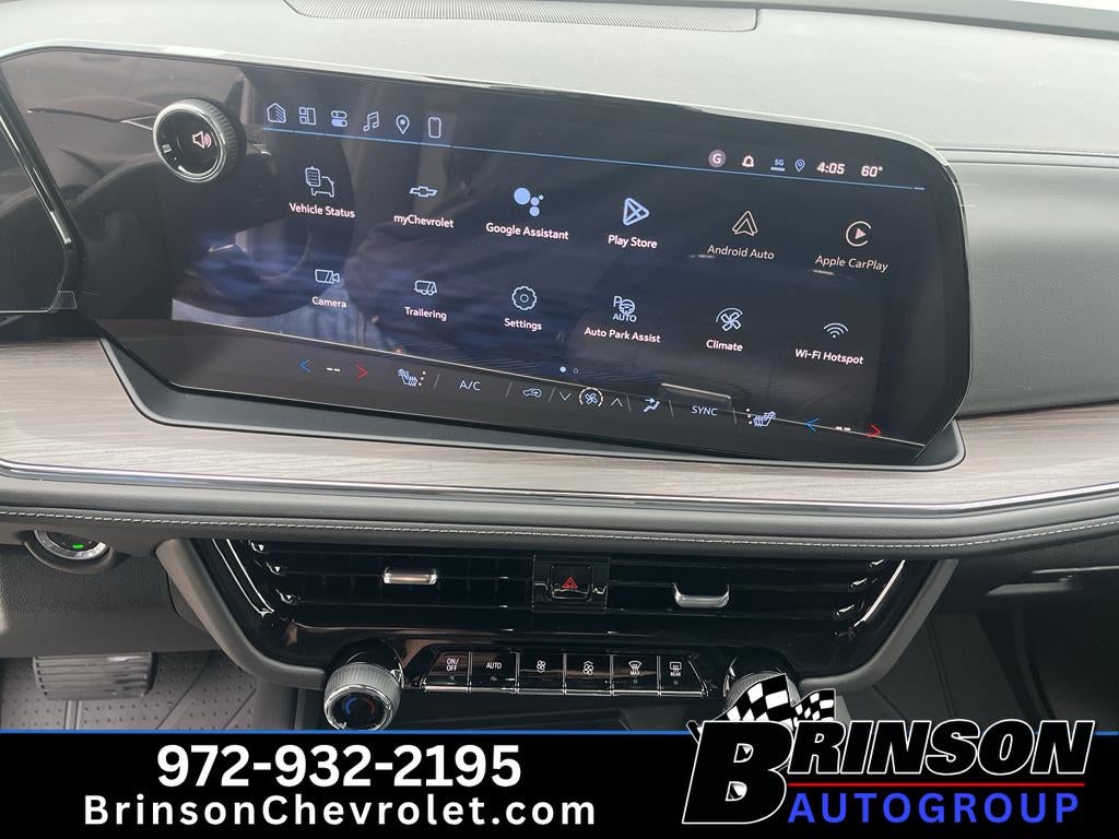 Max Trailering Package: Integrated Trailer Brake Controller. Advanced Trailering Package: Blind Zone Steering Assist with Trailering; Smart Trailer Integration Indicator; Hitch View with Pan/zoom Image Adjustment. Comfort Package: Heated 2nd Row Outboard Seats; 2nd Row Power Release 60/40 Split-Folding Bench Seat; Memory Settings; LED Headlamps with LED Daytime Running Lamps; Heated Steering Wheel; Bose 10-Speaker Centerpoint Surround Audio System Feature; 3rd Row 60/40 Power-Folding Split-Bench Seat; LED Tail Lamps; Outside Heated Power-Adjustable Mirrors. All-Weather Liner Protection Package: All-Weather Cargo Mat; 3rd Row All-Weather Floor Liners; 1st and 2nd Rows All-Weather Floor Liners. Preferred Equipment Group 2Z7: Bright Front and Rear Door Sill Plates; Remote Start; Rear Power Liftgate; Hill Descent Control; Interior Camera; Floor Console with Storage Area; Black Tubular Assist Steps; Front LED Fog Lamps; Frontal Driver and Outboard Passenger Airbags; USB Ports; Memory Settings For Driver; Z71 Exterior Features; Front Bucket Seats; Universal Home Remote;