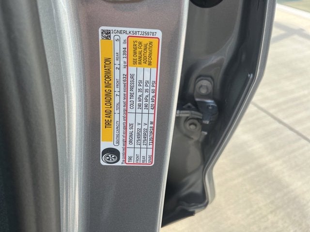 Floor Liner Package (1st and 2nd Row All-Weather Floor Liners, 3rd Row All-Weather Floor Liner, and Integrated Cargo Liner), Preferred Equipment Group 1RS, 12 Speakers, 3rd row seats: split-bench, 4-Wheel Disc Brakes, 6-Way Power Front Passenger Seat Adjuster, 8-Way Power Driver Seat Adjuster, ABS brakes, Air Conditioning, Alloy wheels, AM/FM radio: SiriusXM with 360L, Apple CarPlay/Android Auto, Auto High-beam Headlights, Auto tilt-away steering wheel, Auto-dimming door mirrors, Automatic temperature control, Bose Premium 12-Speaker Audio System Feature, Brake assist, Bumpers: body-color, Child-Seat-Sensing Airbag, Compass, Delay-off headlights, Driver 4-Way Power Lumbar Seat Adjuster, Driver door bin, Driver vanity mirror, Dual front impact airbags, Dual front side impact airbags, Electronic Stability Control, Emergency communication system: OnStar, Exterior Parking Camera Rear, Four wheel independent suspension, Front anti-roll bar, Front Bucket Seats, Front Center Armrest, Front dual zone A/C, Front Passenger 4-Way Power Lumbar Seat Adjuster, Front reading lights, Fully automatic headlights, Garage door transmitter, Heated door mirrors, Heated Driver and Front Passenger Seats, Heated front seats, Heated rear seats, Heated steering wheel, Illuminated entry, Low tire pressure warning, Memory seat, Navigation System, Occupant sensing airbag, Outside temperature display, Overhead airbag, Overhead console, Panic alarm, Passenger door bin, Passenger vanity mirror, Perforated Leather-Appointed Seat Trim, Power door mirrors, Power driver seat, Power Dual Glass Panoramic Sliding Sunroof, Power Liftgate, Power passenger seat, Power steering, Power windows, Radio data system, Radio: : Audio System w/17.7 Diagonal Display, Rain sensing wipers, Rear air conditioning, Rear anti-roll bar, Rear reading lights, Rear window defroster, Rear window wiper, Remote keyless entry, Security system, SiriusXM with 360L Trial Subscription, Speed control, Speed-sensing steering, Spoiler, Sport steering wheel, Steering wheel memory, Steering wheel mounted audio controls, Tachometer, Telescoping steering wheel, Tilt steering wheel, Traction control, Trip computer, Turn signal indicator mirrors, Variably intermittent wipers, Ventilated Driver and Front Passenger Seats, Ventilated front seats, Voltmeter, and Wheels: 22 High Gloss Black Painted Aluminum.