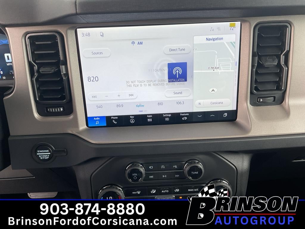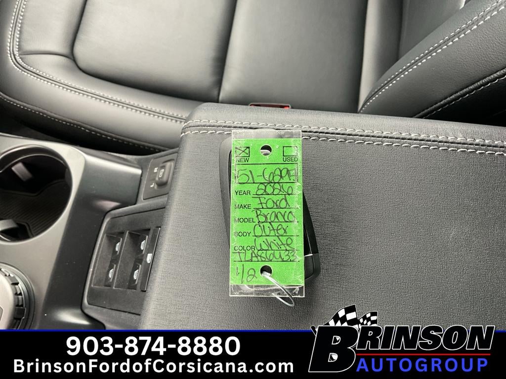 2026 Ford Bronco Outer Banks - bold style, rugged capability, and modern tech converge in this standout 4WD SUV located in Corsicana, TX. Powered by a responsive V6 2.7L gasoline engine, this Ford Bronco delivers confident acceleration and the capability to take on highways and weekend trails with equal ease. The Outer Banks trim blends premium comfort with off-road readiness, making it a versatile choice for daily driving and outdoor adventures. Step inside to find luxurious leather seats that cradle you on long drives, a heated steering wheel for chilly mornings, and thoughtful convenience features like remote start to warm or cool the cabin before you head out. Hands Free Bluetooth® and Android Auto keep your smartphone connected for navigation, music, and calls while minimizing distractions so you can keep your eyes on the road. Exterior design cues announce capability and presence - muscular lines, signature Ford Bronco styling, and confident stance. The advanced 4WD system provides traction where you need it, while modern safety and convenience tech enhance peace of mind on every trip. Whether you're commuting around Corsicana, exploring nearby state parks, or tackling rugged backroads, this Ford Bronco Outer Banks balances refinement with true utility. This 2026 Ford Bronco Outer Banks in Corsicana, TX is ready to elevate your drive with comfort, connectivity, and capability. Schedule a test drive and experience the perfect blend of style and performance firsthand.