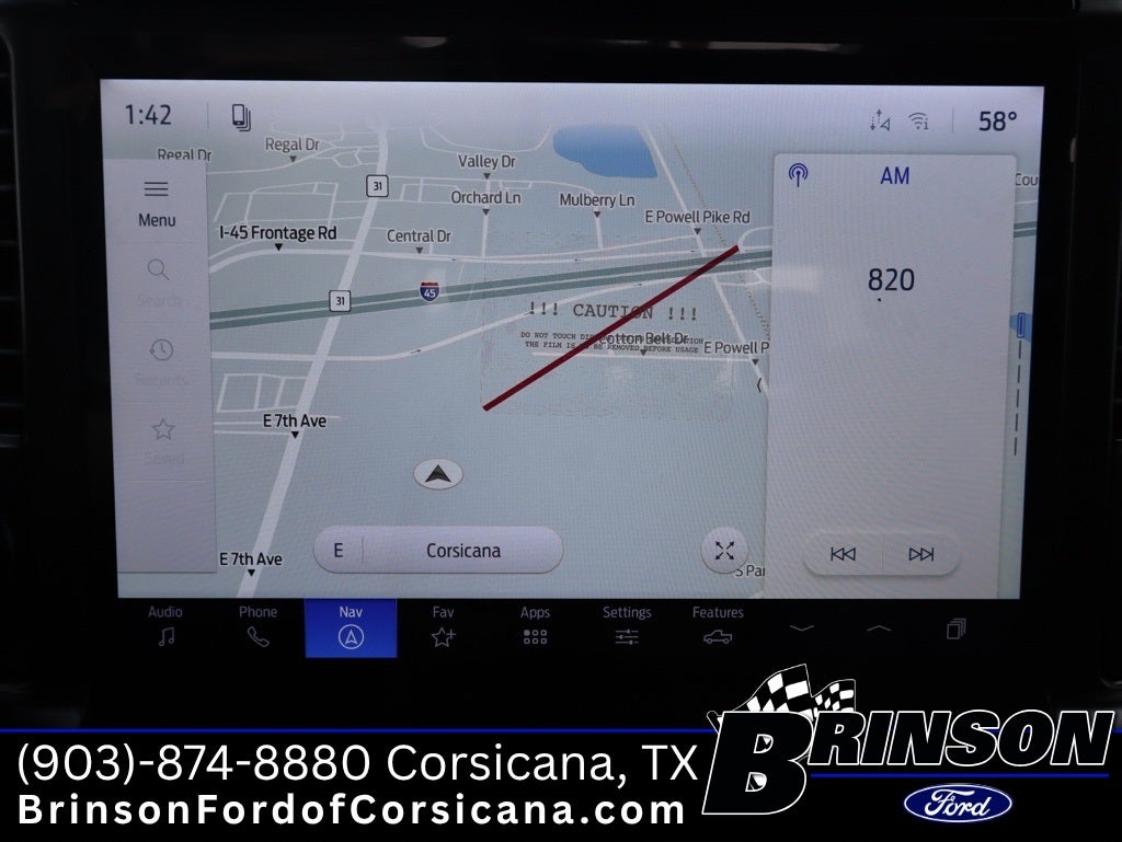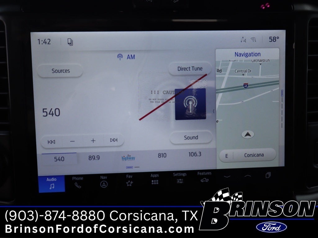 Ford Connectivity Package (1-Year Included), Internet access capable: 5G Modem - Ford Connectivity Package, 4WD, 3.31 Axle Ratio, 4-Wheel Disc Brakes, 8 Speakers, ABS brakes, ActiveX Trimmed Bucket Seats, Air Conditioning, Alloy wheels, AM/FM radio: SiriusXM with 360L, Auto High-beam Headlights, Auto-dimming door mirrors, Auto-dimming Rear-View mirror, Automatic temperature control, Brake assist, Bumpers: chrome, Chrome wheels, Compass, Delay-off headlights, Driver door bin, Driver vanity mirror, Dual front impact airbags, Dual front side impact airbags, Electronic Stability Control, Emergency communication system: SYNC 4 911 Assist, Front anti-roll bar, Front Bucket Seats, Front Center Armrest, Front dual zone A/C, Front fog lights, Front reading lights, Front wheel independent suspension, Fully automatic headlights, Garage door transmitter, Heated door mirrors, Heated front seats, Heated steering wheel, Illuminated entry, Low tire pressure warning, Memory seat, Navigation system: Connected Navigation, Occupant sensing airbag, Outside temperature display, Overhead airbag, Overhead console, Panic alarm, Passenger door bin, Passenger vanity mirror, Power door mirrors, Power driver seat, Power passenger seat, Power steering, Power windows, Radio data system, Rain sensing wipers, Rear reading lights, Rear seat center armrest, Rear step bumper, Rear window defroster, Remote keyless entry, Security system, Speed control, Split folding rear seat, Steering wheel mounted audio controls, Tachometer, Telescoping steering wheel, Tilt steering wheel, Traction control, Trip computer, Turn signal indicator mirrors, Variably intermittent wipers, Ventilated front seats, and Wheels: 18 Chrome-Like PVD.