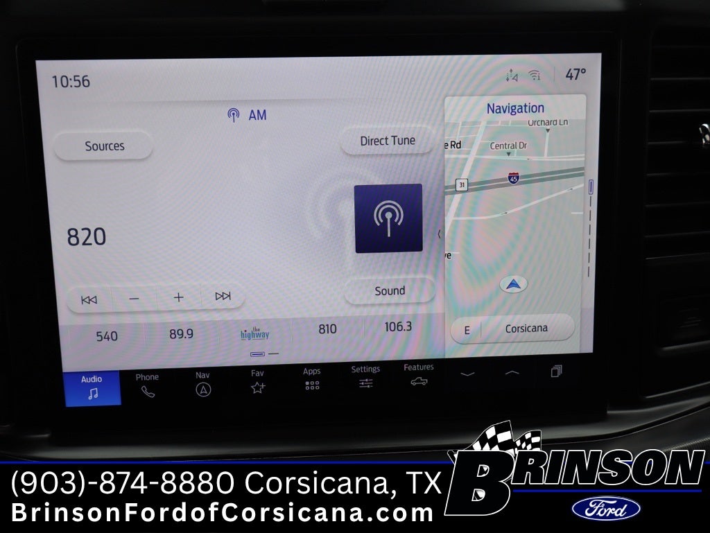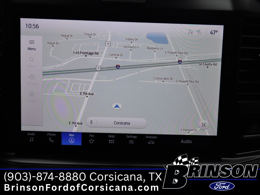 Ford Connectivity Package (1-Year Included), Internet access capable: 5G Modem - Ford Connectivity Package, 4WD, ABS brakes, Alloy wheels, Compass, Electronic Stability Control, Front dual zone A/C, Heated door mirrors, Heated front seats, Heated rear seats, Illuminated entry, Low tire pressure warning, Remote keyless entry, Traction control, 3.73 Axle Ratio, 4-Wheel Disc Brakes, Adjustable pedals, Air Conditioning, AM/FM radio: SiriusXM with 360L, Auto High-beam Headlights, Auto-dimming Rear-View mirror, Automatic temperature control, Brake assist, Delay-off headlights, Driver door bin, Driver vanity mirror, Dual front impact airbags, Dual front side impact airbags, Emergency communication system: SYNC 4 911 Assist, Flow-Through Console, Front anti-roll bar, Front Bucket Seats, Front Center Armrest, Front fog lights, Front reading lights, Fully automatic headlights, Garage door transmitter, Heated steering wheel, Memory seat, Navigation system: Connected Navigation, Outside temperature display, Overhead airbag, Overhead console, Panic alarm, Passenger door bin, Passenger vanity mirror, Pedal memory, Power door mirrors, Power driver seat, Power passenger seat, Power steering, Power windows, Rain sensing wipers, Rear reading lights, Rear seat center armrest, Rear step bumper, Rear window defroster, Security system, Speed control, Split folding rear seat, Steering wheel mounted audio controls, Tachometer, Telescoping steering wheel, Tilt steering wheel, Trip computer, Turn signal indicator mirrors, Variably intermittent wipers, and Ventilated front seats.