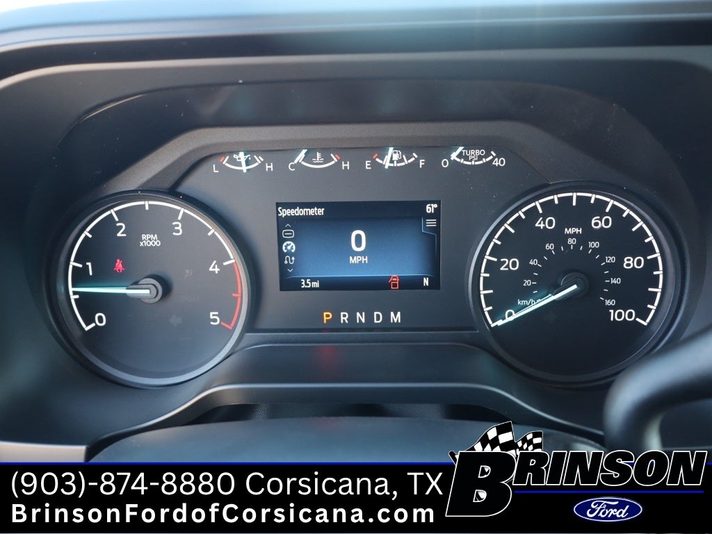 Ford Connectivity Package (1-Year Included), Internet access capable: 5G Modem - Ford Connectivity Package, 4WD, ABS brakes, Compass, Electronic Stability Control, Heated door mirrors, Illuminated entry, Low tire pressure warning, Remote keyless entry, Traction control, 17 Argent Painted Steel Wheels, 3.73 Axle Ratio, 4-Wheel Disc Brakes, 6 Speakers, Air Conditioning, AM/FM radio, Brake assist, Delay-off headlights, Dual front impact airbags, Dual front side impact airbags, Emergency communication system: SYNC 4 911 Assist, Exterior Parking Camera Rear, Front anti-roll bar, Front Center Armrest w/Storage, Front reading lights, Fully automatic headlights, HD Vinyl 40/20/40 Split Bench Seat, Outside temperature display, Overhead airbag, Overhead console, Panic alarm, Passenger vanity mirror, Power door mirrors, Power steering, Power windows, Rear reading lights, Rear step bumper, Security system, Speed control, Split folding rear seat, Steering wheel mounted audio controls, SYNC 4, Tachometer, Telescoping steering wheel, Tilt steering wheel, Trip computer, Turn signal indicator mirrors, and Variably intermittent wipers.