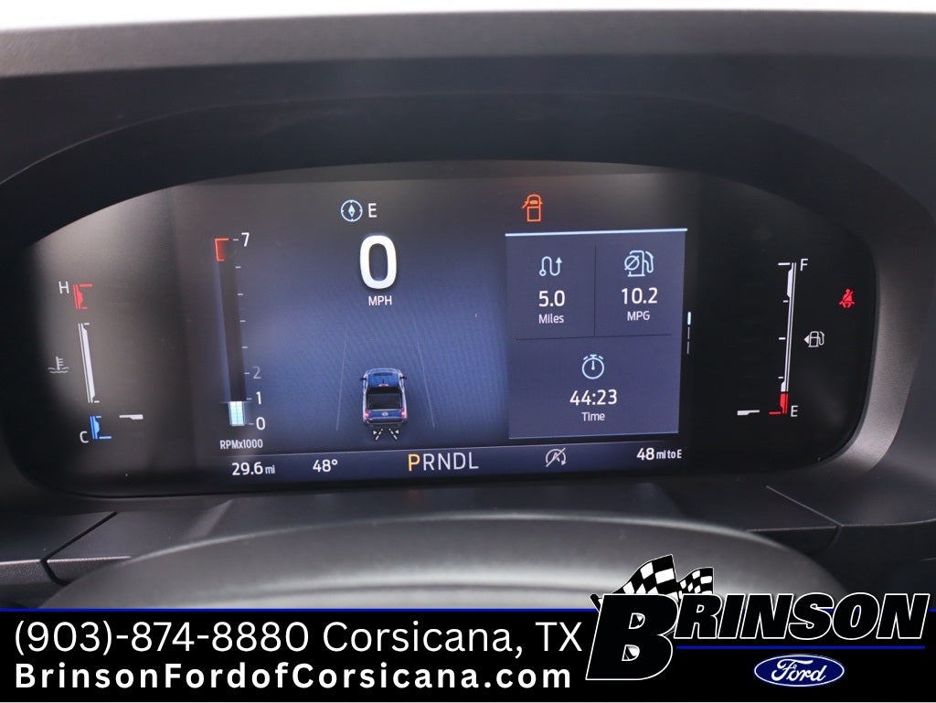 Ford Connectivity Package (1-Year Included), Internet access capable: 5G Modem - Ford Connectivity Package, 2.91 Axle Ratio, 4-Wheel Disc Brakes, 6 Speakers, ABS brakes, Air Conditioning, AM/FM radio: SiriusXM with 360L, Apple CarPlay/Android Auto, Auto High Beams, Auto High-beam Headlights, Automatic temperature control, Brake assist, Bumpers: body-color, Compass, Delay-off headlights, Driver door bin, Driver vanity mirror, Dual front impact airbags, Dual front side impact airbags, Electronic Stability Control, Emergency communication system: SYNC 4 911 Assist, Exterior Parking Camera Rear, Four wheel independent suspension, Front anti-roll bar, Front Bucket Seats, Front Center Armrest, Front Cloth Bucket Seats, Front reading lights, Fully automatic headlights, Illuminated entry, Intersection Assist, Knee airbag, Lane-Keeping System, Low tire pressure warning, Occupant sensing airbag, Outside temperature display, Overhead airbag, Overhead console, Panic alarm, Passenger door bin, Passenger vanity mirror, Power steering, Power windows, Radio data system, Rear anti-roll bar, Rear step bumper, Rear-View Camera, Remote keyless entry, Speed control, Speed-sensing steering, Steering wheel mounted audio controls, Telescoping steering wheel, Tilt steering wheel, Traction control, and Trip computer. 22/30 City/Highway MPG