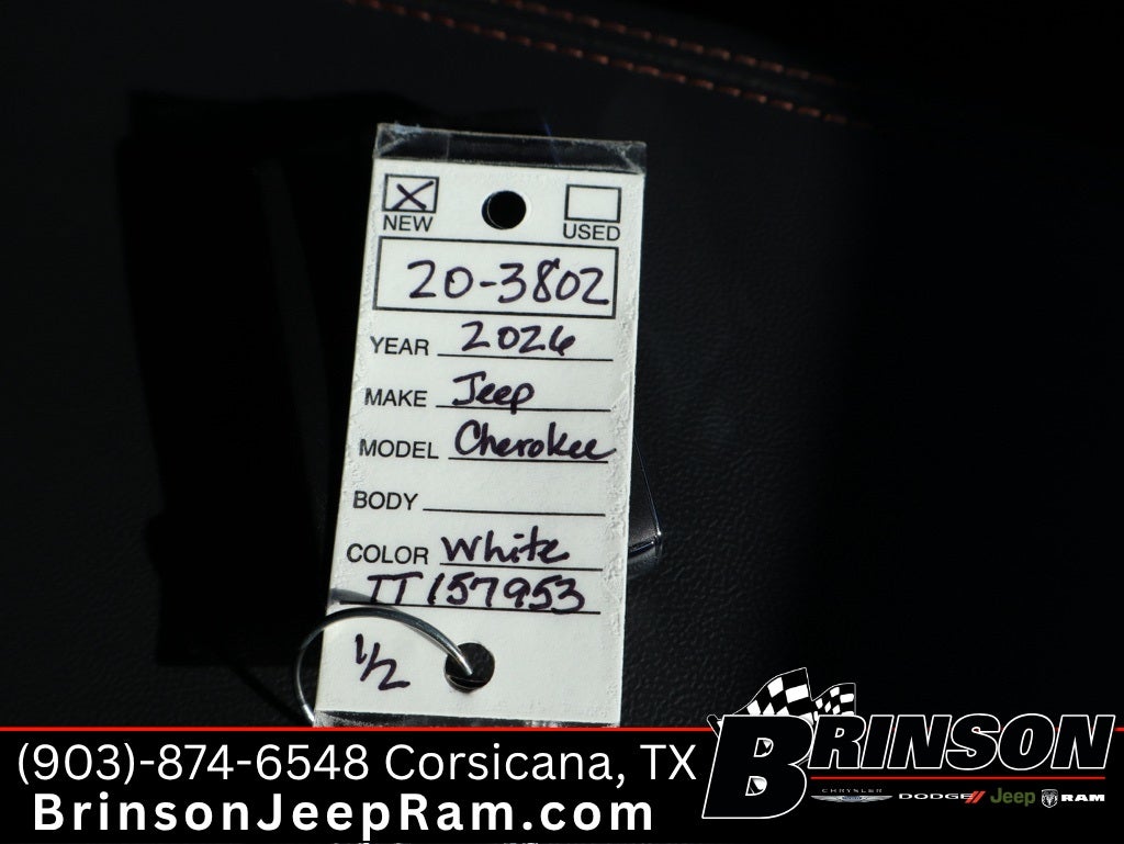$1,493 off MSRP! Bright White Clearcoat 2026 Jeep Cherokee 4D Sport Utility Laredo 4WD CVT 1.6L I4 1.6L I4. Quick Order Package 23G Limited (Auto-Dimming Rear-View Mirror, Capri Leatherette Perforated Seats, Cognac Interior Stitching, Exterior Mirrors Courtesy Lamps, Exterior Mirrors with Supplemental Signals, Gloss Black Mirrors, Heated Exterior Mirrors, Heated Steering Wheel, Limited Badge, Power 2-Way Passenger Lumbar Adjust, Power Adjust 6-Way Front Passenger Seat, Power Liftgate, Power Multi-Function Foldaway Mirrors, Security Alarm, Universal Garage Door Opener, and Wireless Charging Pad), 1.6L I4, 4-Wheel Disc Brakes, 4.16 Final Drive Ratio, 4G LTE Wi-Fi Hot Spot, 6 Speakers, ABS brakes, Air Conditioning, Alloy wheels, AM/FM radio: SiriusXM with 360L, Apple CarPlay, Apple CarPlay/Android Auto, Auto High-beam Headlights, Automatic temperature control, Brake assist, Compass, Delay-off headlights, Driver door bin, Driver vanity mirror, Dual front impact airbags, Dual front side impact airbags, Electronic Stability Control, Emergency communication system, Four wheel independent suspension, Front anti-roll bar, Front Bucket Seats, Front Center Armrest, Front dual zone A/C, Front fog lights, Front License Plate Bracket, Front reading lights, Fully automatic headlights, Global Telematics Box Module (TBM), Google Android Auto, Heated door mirrors, Heated front seats, Illuminated entry, Knee airbag, Low tire pressure warning, Occupant sensing airbag, Outside temperature display, Overhead airbag, Overhead console, Panic alarm, ParkView Rear Back-Up Camera, Passenger door bin, Passenger vanity mirror, Power door mirrors, Power driver seat, Power steering, Power windows, Radio data system, Radio: Uconnect 5 with 12.3 Display, Rain sensing wipers, Rear anti-roll bar, Rear reading lights, Rear seat center armrest, Rear side impact airbag, Rear window defroster, Rear window wiper, Remote keyless entry, SiriusXM with 360L, Soul Cloth Seats with Labyrinth Embossing, Speed control, Speed-sensing steering, Split folding rear seat, Spoiler, Steering wheel mounted audio controls, Tachometer, Telescoping steering wheel, Tilt steering wheel, Traction control, Trip computer, US/Canada Connectivity, Variably intermittent wipers, Voltmeter, and Wheels: 18 x 7 Machine Face Painted Aluminum.
