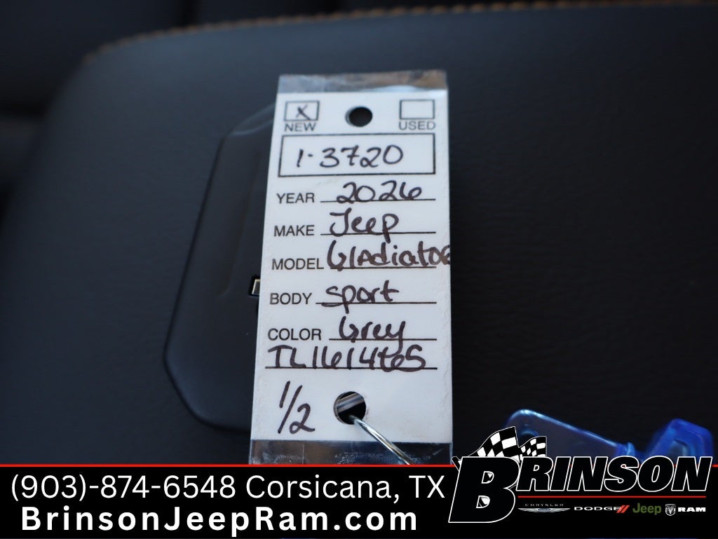 $2,443 off MSRP! Anvil Clearcoat 2026 Jeep Gladiator 4D Crew Cab Texas Trail 4WD 8-Speed Automatic 3.6L V6 24V VVT Convenience Group (Daytime Running Lamp System, Emergency/Assistance Call, Front Door Locks 2-Door Passive Entry, Heated Front Seats, Heated Steering Wheel, Remote Start System, and Universal Garage Door Opener), Quick Order Package 24J Texas Trail (Advanced Brake Assist, Automatic Headlamps, Body Color 3-Piece Hard Top, Central ADAS Decision Module (CADM), Deep Tint Sunscreen Windows, Freedom Panel Storage Bag, Full Length Floor Console Premium Armrest, Full Speed Forward Collision Warning Plus, Hard Seat Back, Leather Wrapped Park Brake Handle, Leather Wrapped Shift Knob, Power 4-Way Driver Lumbar Adjust, Power 4-Way Passenger Lumbar Adjust, Power Adjust 8-Way Driver Seat, Power Adjust 8-Way Front Passenger Seat, Power Heated Mirrors, Premium Door Trim Panel, Premium McKinley Trimmed Seats, Premium Wrapped Steering Wheel, Rear Sliding Window, Rear Window Defroster, Security Alarm, Side Steps, Texas Trail, Wheels: 17 x 7.5 Painted Black, and Willys Suspension), 3.73 Rear Axle Ratio, 4-Wheel Disc Brakes, 8 Speakers, ABS brakes, Air Conditioning, AM/FM radio: SiriusXM with 360L, Apple CarPlay/Android Auto, Brake assist, Cloth Low-Back Bucket Seats, Compass, Delay-off headlights, Driver door bin, Driver vanity mirror, Dual front impact airbags, Dual front side impact airbags, Electronic Stability Control, Front anti-roll bar, Front Bucket Seats, Front Center Armrest w/Storage, Front fog lights, Front License Plate Bracket, Front reading lights, Illuminated entry, Integrated roll-over protection, Low tire pressure warning, Manufacturer's Statement of Origin, MOPAR All-Weather Slush Mats, Normal Duty Suspension, Occupant sensing airbag, Outside temperature display, Overhead airbag, Panic alarm, ParkView Rear Back-Up Camera, Passenger door bin, Passenger vanity mirror, Power steering, Power windows, Radio data system, Rear anti-roll bar, Rear reading lights, Remote keyless entry, Speed control, Split folding rear seat, Steering wheel mounted audio controls, Tachometer, Telescoping steering wheel, Tilt steering wheel, Traction control, Trip computer, Variably intermittent wipers, Voltmeter, and Wheels: 17 x 7.5 Black Steel Styled.