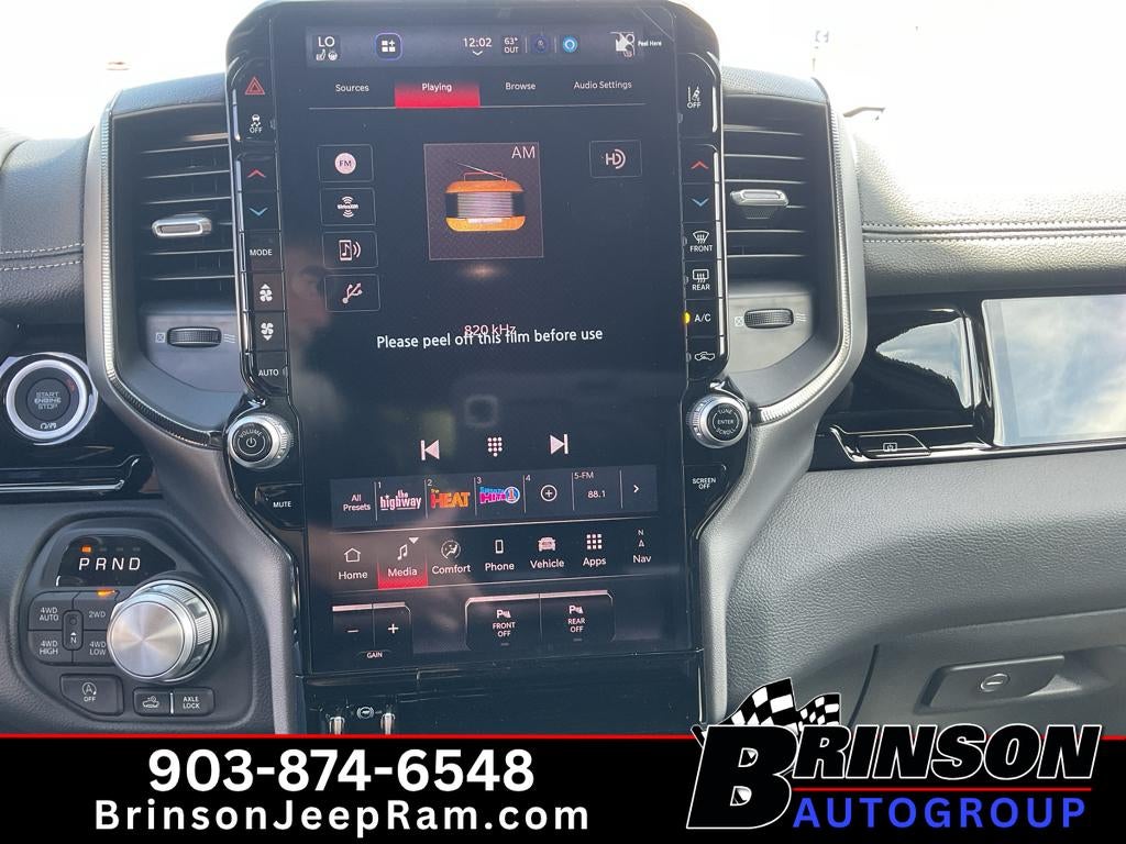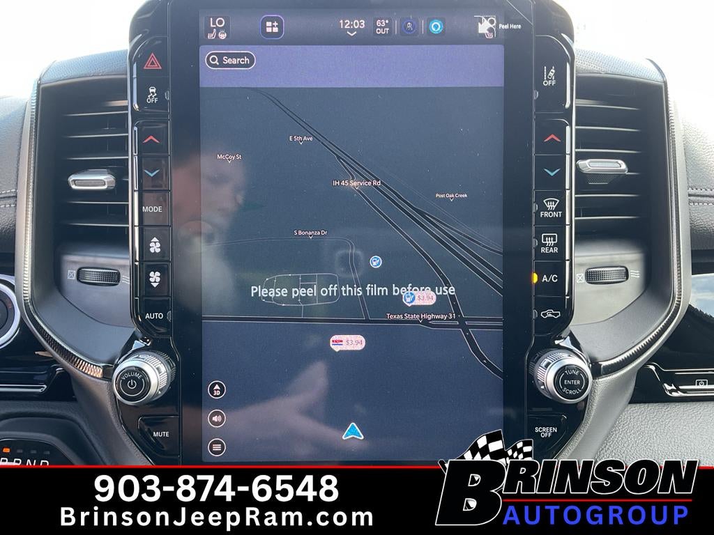 2026 Ram 1500 Rebel 4WD - bold capability meets refined comfort in this rugged pickup located in Corsicana, TX. Powered by a responsive 3.0L V6 gasoline engine and a 4WD system, this Ram Rebel delivers confident performance for towing, hauling, and off-road adventures while maintaining composed on-road manners. The athletic exterior is matched by a thoughtfully appointed cabin that balances utility with premium features. Inside, enjoy seamless smartphone integration through Apple CarPlay, keeping navigation, calls, and media at your fingertips. The built-in navigation system provides clear routing for long drives or local trips around Corsicana. Cold mornings are more comfortable thanks to the heated steering wheel, and passengers benefit from a premium sound system that fills the cabin with crisp, immersive audio. Safety and convenience are enhanced by the back-up camera, assisting precise maneuvering in tight spaces and busy parking lots. Practical touches like durable seating surfaces, generous cargo capacity, and advanced connectivity make this Ram 1500 Rebel a versatile choice for workdays and weekend escapes. With its combination of off-road-ready hardware, modern technology, and driver-focused amenities, this 2026 model is ready to handle Texas roads and beyond. Schedule a test drive in Corsicana, TX to experience the capability and comfort of the Ram 1500 Rebel firsthand.