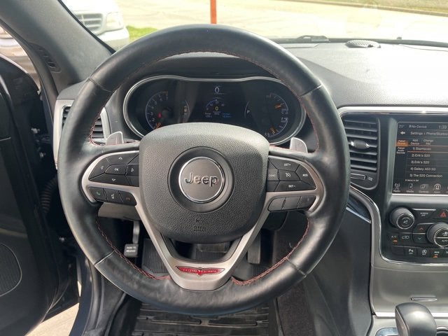 Rhino Clearcoat 2017 Jeep Grand Cherokee Trailhawk 4WD 8-Speed Automatic 3.6L V6 24V VVT 4WD. Quick Order Package 23J, Trailhawk Luxury Group (DISC) (#4 Seat Foam Cushion, Auto High Beam Headlamp Control, Automatic Headlamp Leveling System, Bi-Xenon High-Intensity Discharge Headlamps, Cargo Compartment Cover, Dual-Pane Panoramic Sunroof, LED Daytime Running Headlamps, LED Fog Lamps, Power Tilt/Telescope Steering Column, Rain Sensitive Windshield Wipers, and Trailhawk Leather Trim Seats w/Perf (DISC)), 4WD, 1 Year Trial (Registration Required), 1-Year SiriusXM Radio Service, 10 Speakers, 3.45 Rear Axle Ratio, 4-Wheel Disc Brakes, 5-Year SiriusXM Traffic Service, 5-Year SiriusXM Travel Link Service, 8.4 Touchscreen Display, ABS brakes, Air Conditioning, Alloy wheels, AM/FM radio: SiriusXM, Anti-whiplash front head restraints, Audio memory, Auto-dimming door mirrors, Auto-Dimming Exterior Passenger Mirror, Auto-Dimming Rear-View Mirror, Auto-dimming Rear-View mirror, Auto-leveling suspension, Automatic temperature control, Blind Spot & Cross Path Detection, Brake assist, Bumpers: body-color, Compass, Delay-off headlights, Driver door bin, Driver vanity mirror, Dual front impact airbags, Dual front side impact airbags, Electronic Stability Control, Emergency communication system: Uconnect Access, Engine Oil Cooler, For Details Visit DriveUconnect.com, For More Info, Call 800-643-2112, Four wheel independent suspension, Front anti-roll bar, Front Bucket Seats, Front Center Armrest w/Storage, Front dual zone A/C, Front fog lights, Front reading lights, Fully automatic headlights, Garage door transmitter, GPS Antenna Input, GPS Navigation, HD Radio, Heated door mirrors, Heated front seats, Heated rear seats, Heated steering wheel, Illuminated entry, Instrument Cluster w/Off-Road Disp. Pages, Integrated Voice Command w/Bluetooth®, Knee airbag, Leather Shift Knob, Low tire pressure warning, Memory seat, Normal Duty Suspension - Increased Travel, Occupant sensing airbag, Outside temperature display, Overhead airbag, Overhead console, Panic alarm, ParkView Rear Back-Up Camera, Passenger door bin, Passenger vanity mirror, Power door mirrors, Power driver seat, Power Liftgate, Power passenger seat, Power steering, Power windows, Radio data system, Radio: Uconnect 3C Nav w/8.4 Display, Radio: Uconnect 3C w/8.4 Display, Rear anti-roll bar, Rear reading lights, Rear seat center armrest, Rear window defroster, Rear window wiper, Remote keyless entry, Roadside Assistance & 9-1-1 Call, Roof rack: rails only, Security system, SiriusXM Satellite Radio, SiriusXM Traffic, SiriusXM Travel Link, Speed control, Speed-Sensitive Wipers, Split folding rear seat, Spoiler, Steering wheel mounted audio controls, Tachometer, Telescoping steering wheel, Tilt steering wheel, Traction control, Trailhawk Leather/Suede Seats, Trip computer, Turn signal indicator mirrors, Uconnect Access, Variably intermittent wipers, Ventilated front seats, and Wheels: 18 x 8.0 Off Road AluminuM.