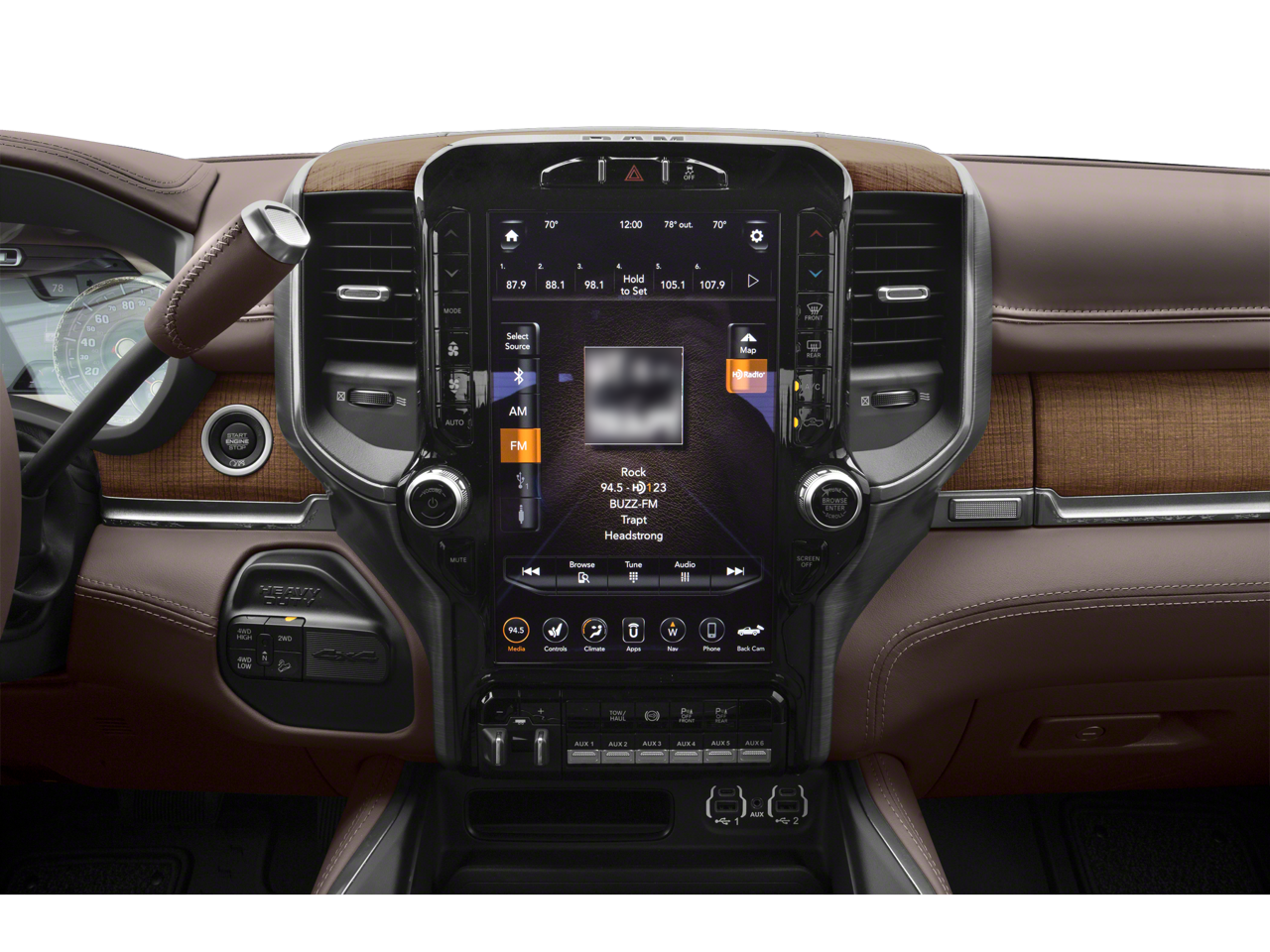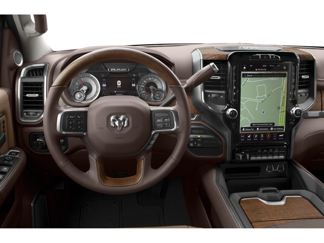Cold Weather Group: Engine Block Heater; Winter Front Grille Cover. Quick Order Package 2HK Longhorn. Longhorn Level 1 Equipment Group: 17 Speaker High Performance Audio; Blind Spot and Cross Path Detection; Ramcharger Wireless Charging Pad; Power Deployable Running Boards; Uconnect Radio 12.0 with Navigation. Safety Group: Blind Spot and Cross Path Detection; Adaptive Cruise Control with Stop; Full Speed Forward Collision Warning Plus. Towing Technology Group: Center Stop Lamp with Cargo View Camera; Surround View Camera System; Blind Spot and Cross Path Detection; Trailer Reverse Guidance. Heavy Duty Snow Plow Prep Group: Transfer Case Skid Plate Shield; 220 Amp Alternator. Body Color Bumper Group: Painted Front Bumper; Painted Rear Bumper. 20" X 8.0" Polished Aluminum Wheels. Uconnect Radio 12.0 with Navigation. Power Sunroof. Blind Spot and Cross Path Detection. Anti-Spin Differential Rear Axle. Deployable Bed Step. Center Stop Lamp with Cargo View Camera. Delmonico Red Pearlcoat. Delmonico Red Pearlcoat. Chrome Tow Hooks. Clearance Lamps. **Equipment listed is based on original vehicle build and subject to change. Please confirm the accuracy of the included equipment by calling the dealer prior to purchase.**