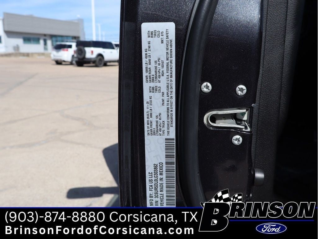 Quick Order Package 2HY Lone Star: Lone Star Badge. Lone Star Silver Edition: Chrome Tow Hooks; Chrome Flat Wheel-To-wheel Side Steps; LT285/60R20E OWL On/off Road Tires; Chrome Belt Moldings; Body Color/chrome Door Handles; 20" X 8.0" Polished Aluminum Wheels; Black Interior Accents; Power Adjust/fold/heated Chrome Tow Mirrors; Power Folding Mirrors; Chrome Billets/accents Grille. Off Road Package: Front Performance Tuned Shock Absorbers; Tow Hooks; Off Road Decal; Transfer Case Skid Plate Shield; Hill Descent Control; Rear Performance Tuned Shock Absorbers. Level 1 Equipment Group: Uconnect 4 Radio with 8.4" Display; Locking Lower Glove Box; Rear View Auto Dim Mirror; Power Adjustable Pedals; Leather Wrapped Steering Wheel; Rear Dome with On/off Switch Lamp; Front Fog Lamps; Power Adjust/fold and Heated Black Tow Mirrors; Steering Wheel Mounted Audio Controls; Dual Glove Boxes; Glove Box Lamp; Footwell Courtesy Lamp; Universal Garage Door Opener; Cluster 3.5" TFT Color Display; Power Folding Mirrors; Foam Bottle Insert (door Trim Panel); 2nd Row in Floor Storage Bins; Sun Visors with Illuminated Vanity Mirrors. Quick Order Package 2ZY Lone Star: Lone Star Badge. Uconnect 4 Radio with 8.4" Display. Chrome Flat Wheel-To-wheel Side Steps. Anti-Spin Differential Rear Axle. Center Stop Lamp with Cargo View Camera. Premium Cloth Bucket Seats. Remote Start System. Maximum Steel Metallic CC. Front Fog Lamps. 115-Volt Auxiliary Front Power Outlet. Clearance Lamps. **Equipment listed is based on original vehicle build and subject to change. Please confirm the accuracy of the included equipment by calling the dealer prior to purchase.**