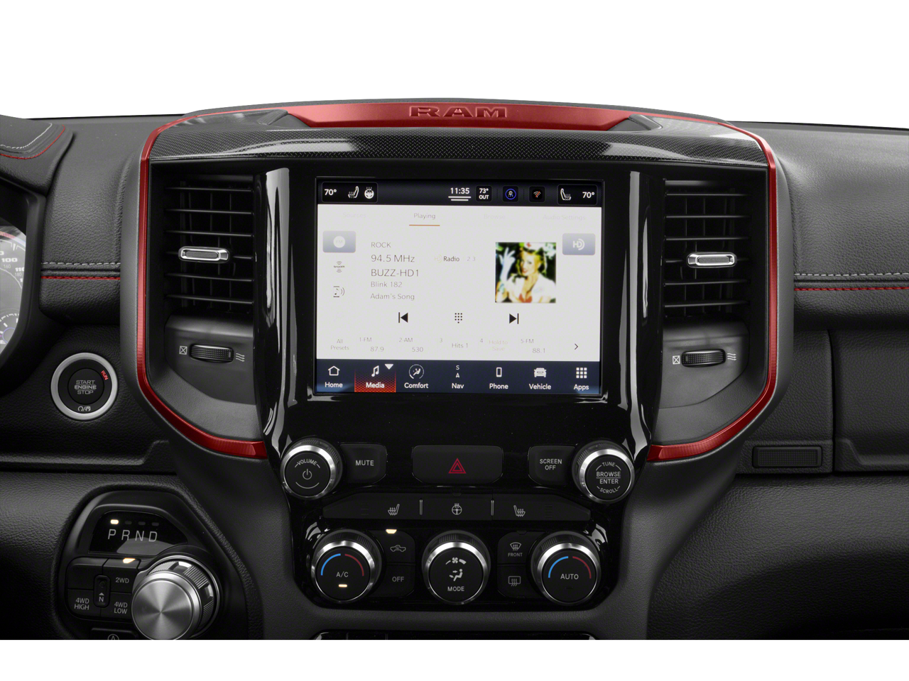 G/T Package: Premium Overhead Console; Under Seat Lighting; Leather/vinyl Bucket Seats; Twill Film Appliques; Leather Wrapped Shift Knob; Leather-Wrapped Steering Wheel; Power Adjustable Pedals with Memory; Steering Wheel Mounted Shift Control; MOPAR Bright Pedal Kit; MOPAR Cold Air Intake System; Passive Cold End Exhaust; Overhead LED Lamps; Floor Console; G/T Decal; LED Dome Lamp with On/off Switch; Exterior Mirrors with Memory; Front Door Accent Lighting; GT Interior Theme; Radio/driver Seat/mirrors/pedals Memory; Rear Door Accent Lighting; LED Footwell Lighting; Performance Pages. Bed Utility Group: MOPAR Deployable Bed Step; MOPAR 4 Adjustable Cargo Tie-Down Hooks; Pick-Up Box Lighting. Quick Order Package 27W Rebel. Rebel Level 2 Equipment Group: Google Android Auto; SiriusXM Radio Service; Bluetooth® Handsfree Phone and Audio; USB Host Flip; Rear Window Defroster; Rain Sensitive Windshield Wipers; For Details. Visit DriveUconnect.com; Integrated Center Stack Radio; ParkSense Front/rear Park Assist with Stop; Power Adjustable Pedals; Rear Dome with On/off Switch Lamp; Connectivity - US/Canada; Body Color Door Handles; 4G LTE Wi-Fi Hot Spot; 115V Auxiliary Rear Power Outlet; GPS Antenna Input; Media Hub with 2 Charge Only USBs; Exterior Mirrors with Heating Element; Auto Dim Exterior Driver Mirror; Global Telematics Box Module; Heated Front Seats; Heated Steering Wheel; 8.4" Touchscreen Display; Foam Bottle Insert (door Trim Panel); Black Exterior Mirrors; Security Alarm; Black Premium Power Mirrors; Apple CarPlay; Remote Start System; SiriusXM Satellite Radio; Exterior Mirrors with Supplemental Signals; Exterior Mirrors Courtesy Lamps; Air Conditioning ATC with Dual Zone Control; 2-Door Passive Entry. Front Door Locks; Universal Garage Door Opener; Power-Folding Mirrors; 2nd Row in Floor Storage Bins; Convex Wide-Angle Mirror Insert; Sun Visors with Illuminated Vanity Mirrors. Trailer Tow Group: Trailer Light Check; Trailer Brake Control; Trailer Reverse Steering Control; Trailer Tire Pressure Monitoring System. Uconnect 5 Navigation Radio with 8.4" Display. 9 Amplified Speakers with Subwoofer. ParkSense Front/rear Park Assist with Stop. Trailer Brake Control. Remote Start System. Rear Wheelhouse Liners. **Equipment listed is based on original vehicle build and subject to change. Please confirm the accuracy of the included equipment by calling the dealer prior to purchase.**