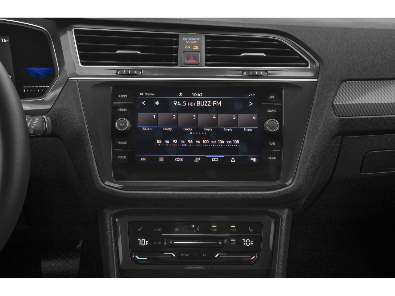 - Radio: MIB3 Composition Media AM/FM/HD -inc: 8" touchscreen, WMA/MP3/FLAC player w/USB-C, voice control, 6-speaker sound system, wireless inductive charger (for compatible devices), App-Connect smartphone integration (w/Apple CarPlay, Android Auto and MirrorLink) via USB, Wireless App-Connect smartphone integration (for compatible devices w/multi-phone pairing capability), capability for in-vehicle 4G LTE enabled Wi-Fi (cellular data plan required; includes limited trial), capability for VW Car-Net services (capabilities for certain services vary; requires enrollment or subscription), Bluetooth connectivity (for compatible devices) and SiriusXM w/360L (w/3-month free trial subscription; 360L services require acceptance of Car-Net terms)