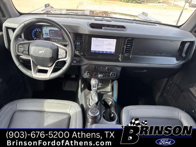 The exterior of this Bronco is dressed in a sleek and sophisticated Black finish, complemented by the CARBONIZED GRAY MOLDED-IN-COLOR HARD TOP. This hardtop not only enhances the Bronco's bold styling but also provides enhanced sound deadening and on-vehicle storage solutions for your outdoor adventures.