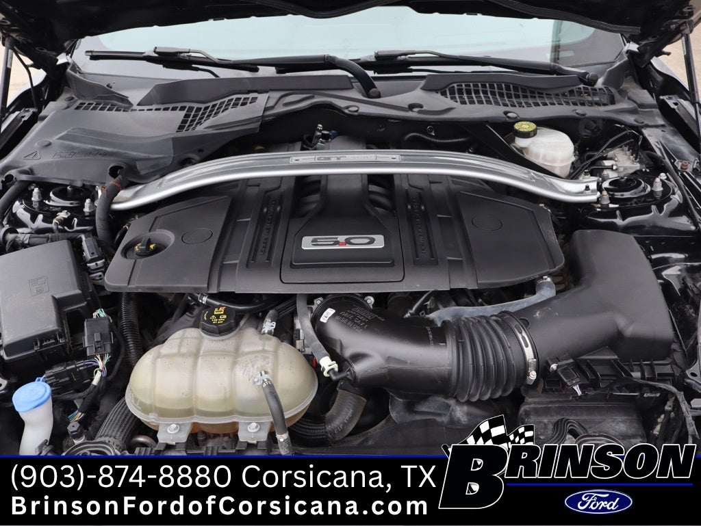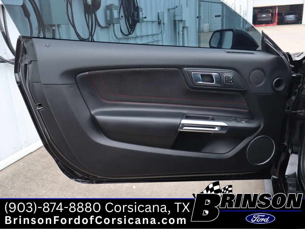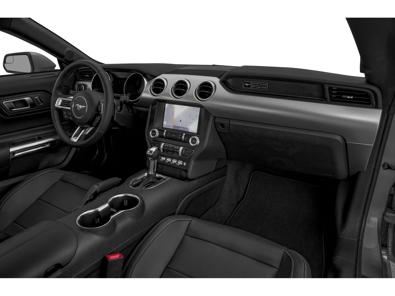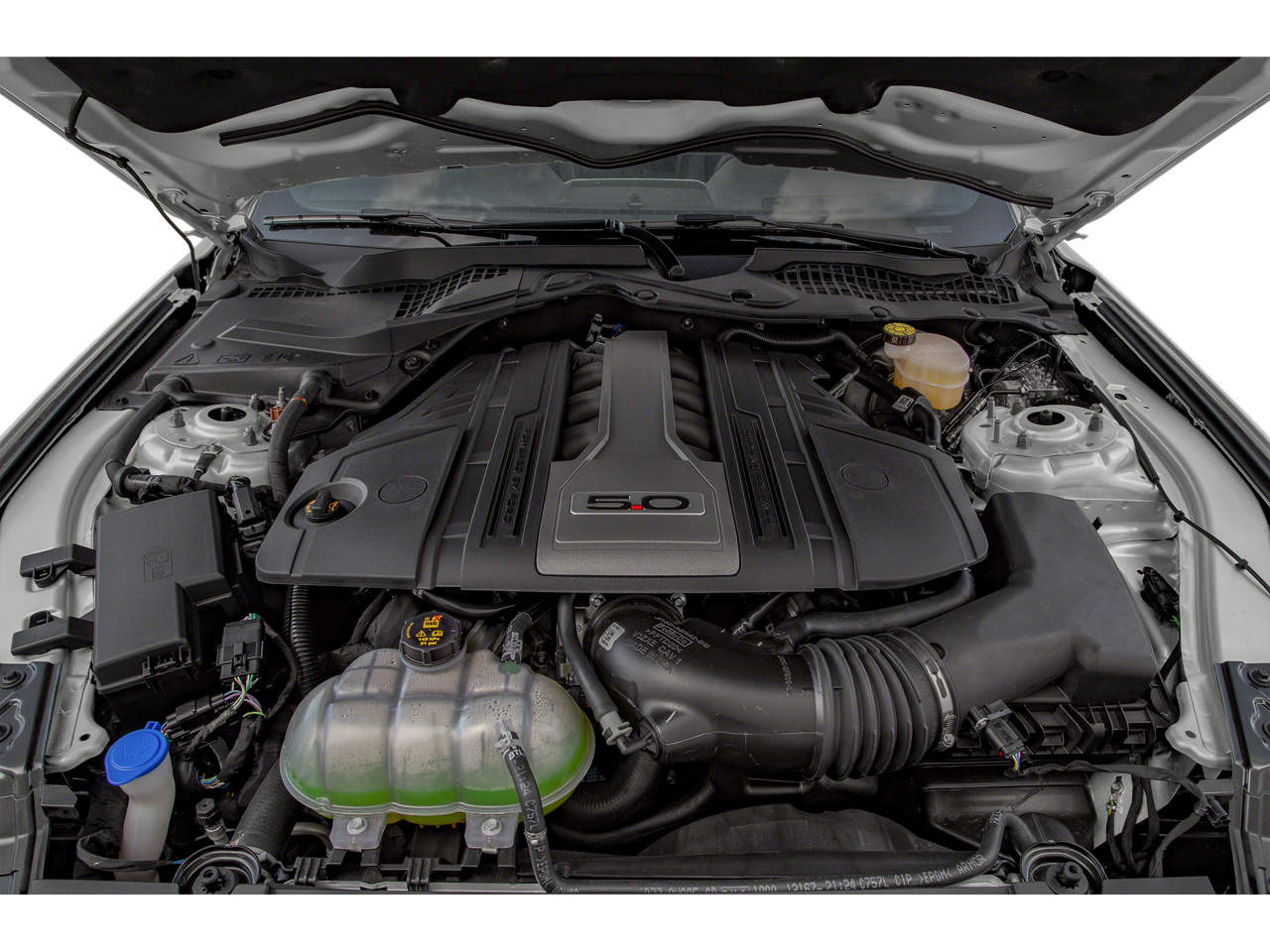 California Special Package (California Special Instrument Panel Applique Badge, California Special Script Rear Badging, Carbon Hex Aluminum Instrument Panel, Floor Mats w/Red Contrast Stitching, Leather-Trimmed Bucket Seats w/Miko Suede Inserts, Miko Suede Door Inserts w/Red Contrast Stitching, Pedestal Rear Spoiler, Unique Front Grilles w/Offset Tri-Bar Pony Logo, and Wheels: 19 x 8.5 Machined-Face Aluminum), Enhanced Security Package (Active Anti-Theft System), Equipment Group 401A, Ford Safe & Smart Package (Adaptive Cruise Control), 4-Wheel Disc Brakes, ABS brakes, Active Valve Performance Exhaust, Air Conditioning, Alloy wheels, AM/FM Stereo, Auto High-beam Headlights, Auto-dimming Rear-View mirror, Black GT, 5.0 & Pony Badges, Brake assist, Bumpers: body-color, Compass, Delay-off headlights, Driver door bin, Driver vanity mirror, Dual front impact airbags, Dual front side impact airbags, Electronic Stability Control, Emergency communication system: 911 Assist, Exterior Parking Camera Rear, Four wheel independent suspension, Front anti-roll bar, Front Bucket Seats, Front Center Armrest, Front fog lights, Front reading lights, Fully automatic headlights, Illuminated entry, Knee airbag, Low tire pressure warning, Occupant sensing airbag, Outside temperature display, Overhead airbag, Overhead console, Panic alarm, Passenger door bin, Passenger vanity mirror, Power door mirrors, Power driver seat, Power passenger seat, Power steering, Power windows, Radio data system, Rain sensing wipers, Rear anti-roll bar, Rear window defroster, Remote keyless entry, Security system, Silver Mid Body Side Stripe, Speed control, Speed-sensing steering, Speed-Sensitive Wipers, Split folding rear seat, Spoiler, Steering wheel mounted audio controls, Tachometer, Telescoping steering wheel, Tilt steering wheel, Traction control, Trip computer, Variably intermittent wipers, Voltmeter, and Wheels: 18 x 8 Machined-Face Aluminum.