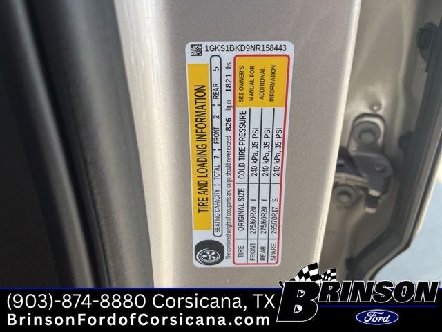 - Tires, 275/60R20SL all-season, blackwall