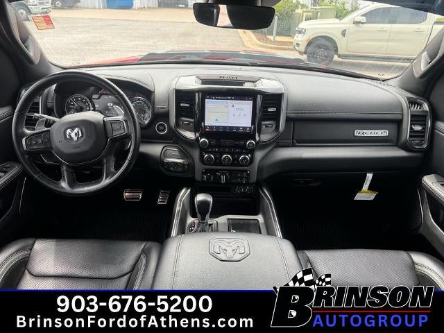 2022 Ram 1500 Rebel - rugged capability meets refined comfort in this striking pre-owned pickup located in Athens, TX. With just 33,320 miles and a potent 5.7L V8 gasoline engine paired to 4WD, this Rebel is built for confident towing, off-road adventures, and commanding highway presence. Tastefully appointed leather seats provide premium comfort, while remote start ensures cabin comfort on every departure. Tech-forward features include Apple CarPlay and built-in navigation for seamless connectivity and effortless route planning. Safety is prioritized with forward collision warning to help you stay alert on busy roads. The Rebel's bold exterior styling and aggressive stance are complemented by an interior designed for both utility and luxury - ample cargo capability with thoughtful driver-focused amenities. Whether hauling gear or cruising around town, this Ram 1500 blends performance, capability, and convenience. Located in Athens, TX, this 2022 Ram 1500 Rebel is ready for test drives and inspection. Finance and protection options are available to tailor ownership to your needs. If you want a powerful V8 pickup with distinct Rebel character, premium leather seating, modern infotainment, and advanced safety features, schedule your appointment today and experience this standout Ram 1500 in person.