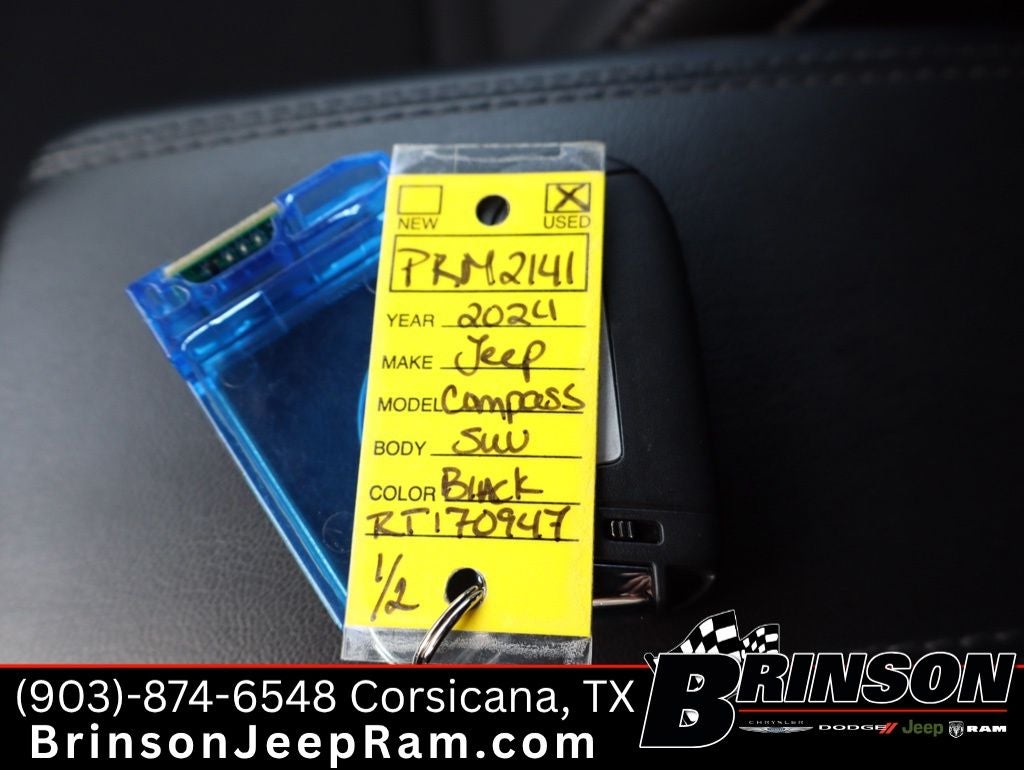 At Brinson you really can expect the best....and get it! Odometer is 3632 miles below market average! Diamond Black Crystal Pearlcoat 2024 Jeep Compass Trailhawk 4WD 8-Speed Automatic 2.0L I4 DOHC **LEATHER SEATS**, **4X4**, **CLEAN CARFAX**, **ADAPTIVE CRUISE**, **LANE ASSIST**, **BACK-UP CAMERA**, **APPLE CAR PLAY/ANDROID AUTO**, **SIRIUS XM SATELITE RADIO**, **CARFAX ONE OWNER**, 4WD. Quick Order Package 29E, 4WD, 10.1 Touchscreen Display, 4-Wheel Disc Brakes, 4.398 Final Drive Ratio, 4G LTE Wi-Fi Hot Spot, 6 Speakers, ABS brakes, Air Conditioning, Alloy wheels, AM/FM radio: SiriusXM, Auto High-beam Headlights, Auto-dimming Rear-View mirror, Automatic temperature control, Brake assist, Bumpers: body-color, Compass, Delay-off headlights, Driver door bin, Driver vanity mirror, Dual front impact airbags, Dual front side impact airbags, Electronic Stability Control, Emergency communication system: Jeep Connect, For Details, Visit DriveUconnect.com, For More Info, Call 800-643-2112, Four wheel independent suspension, Front anti-roll bar, Front Bucket Seats, Front Center Armrest w/Storage, Front dual zone A/C, Front fog lights, Front reading lights, Fully automatic headlights, Global Telematics Box Module (TBM), Heated door mirrors, Illuminated entry, Knee airbag, Leather Shift Knob, Leather steering wheel, Low tire pressure warning, Occupant sensing airbag, Outside temperature display, Overhead airbag, Overhead console, Panic alarm, ParkView Rear Back-Up Camera, Passenger door bin, Passenger vanity mirror, Power door mirrors, Power steering, Power windows, Premium Cloth/Leather Trim Bucket Seats, Radio: Uconnect 5 w/10.1 Display, Rain sensing wipers, Rear anti-roll bar, Rear seat center armrest, Rear window defroster, Rear window wiper, Remote keyless entry, Security system, SiriusXM Guardian - Included Trial (B), SiriusXM Radio Service, Speed control, Split folding rear seat, Spoiler, Steering wheel mounted audio controls, Tachometer, Telescoping steering wheel, Tilt steering wheel, Traction control, Trip computer, Turn signal indicator mirrors, Variably intermittent wipers, and Wheels: 17 x 6.5 Painted Black AluminuM.