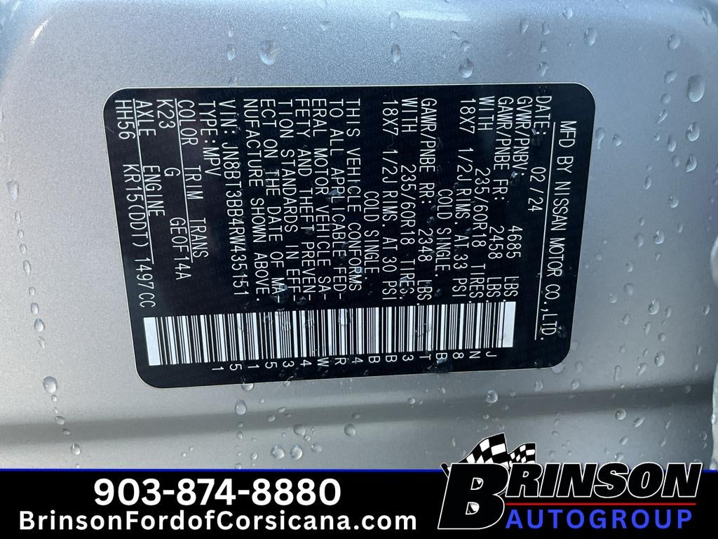 Discover this 2024 Nissan Rogue SV AWD, located in Corsicana, TX — a gently pre-owned crossover with only 20,069 miles and a fuel-efficient 3-cylinder 1.5L gasoline engine. This Nissan Rogue SV blends confident all-wheel-drive capability with modern convenience features, making it an exceptional value for drivers seeking dependable performance and contemporary tech. Inside, enjoy seamless smartphone integration with Apple CarPlay and Android Auto, plus Hands-Free Bluetooth® for safer communication on the go. Remote Start adds comfort on cold mornings or hot afternoons, while the Back-Up Camera provides added confidence when parking or maneuvering in tight spaces. The spacious interior, thoughtful cargo flexibility, and ergonomic controls make daily commutes and weekend escapes equally comfortable. With its low mileage and well-maintained condition, this Nissan Rogue represents one of the best-priced options in the area for buyers prioritizing value, efficiency, and capability. Safety-focused drivers will appreciate the vehicle's responsive AWD system and driver-assist features designed to enhance control and awareness. Schedule a test drive in Corsicana, TX today to experience the smooth ride, practical amenities, and impressive fuel economy of this 2024 Nissan Rogue SV. Competitive pricing and low mileage make this Nissan Rogue an outstanding choice for drivers who want modern features and reliable performance without paying new-car prices.